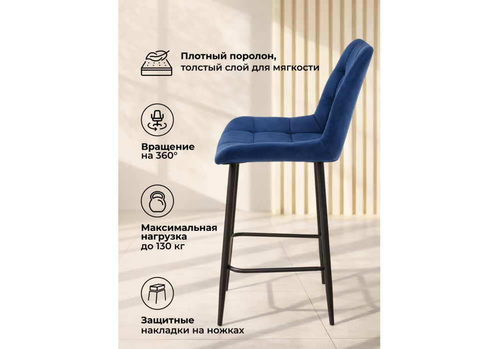 Барный стул поворотный Woodville Челси 360 синий (zd 798) / черный np 632580 в Белгороде