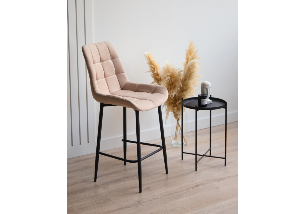 Материал каркаса - металл; Материал сиденья - велюр; Материал обивки - велюр; Цвет ножек - черный; Ширина - 50; Глубина - 58; Высота - 99; Ширина сиденья - 46; Глубина сиденья - 41; Высота сиденья - 63;