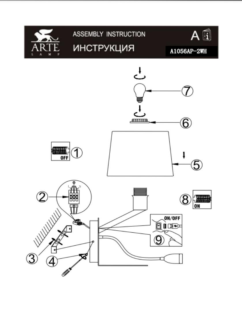 Бра Arte Lamp Ibis A1056AP-2WH, входящий в серию IBIS, отлично подойдет для освещения пространства в спальне, на даче, в прихожей, в кабинете, оформленных в классическом стиле. Данный светильник имеет один абажур белого цвета в форме конуса, а также белую арматуру, изготовленную из металла. Под абажуром расположен гибкий светодиодный источник направленного света мощностью 3В. Также бра оснащено полкой, выключателями на корпусе и USB-портом: 5В. Итальянский производитель Arte Lamp дает гарантию на свое изделие 1 год и рекомендует использовать для устройства лампы накаливания с цоколем Е27 и мощностью 40 Вт, что позволяет осветить помещение площадью 1 кв. м. Технической особенностью этого осветительного прибора является теплая температура света, что делает атмосферу в интерьере более уютной, при этом максимальная цветовая температура свечения спота равна 3000К. Световой поток составляет 300 Лм, а индекс цветопередачи 85 Ra. Способ крепления светильника к стене на планку позволяет быстро и просто осуществить монтаж осветительного прибора. Срок службы этого настенного светильника не менее 25000 часов. Лаконичный дизайн, матовая белая поверхность и теплая цветовая температура бра Arte Lamp Ibis A1056AP-2WH делают его особенным элементом декора, который украсит любое интерьерное пространство.