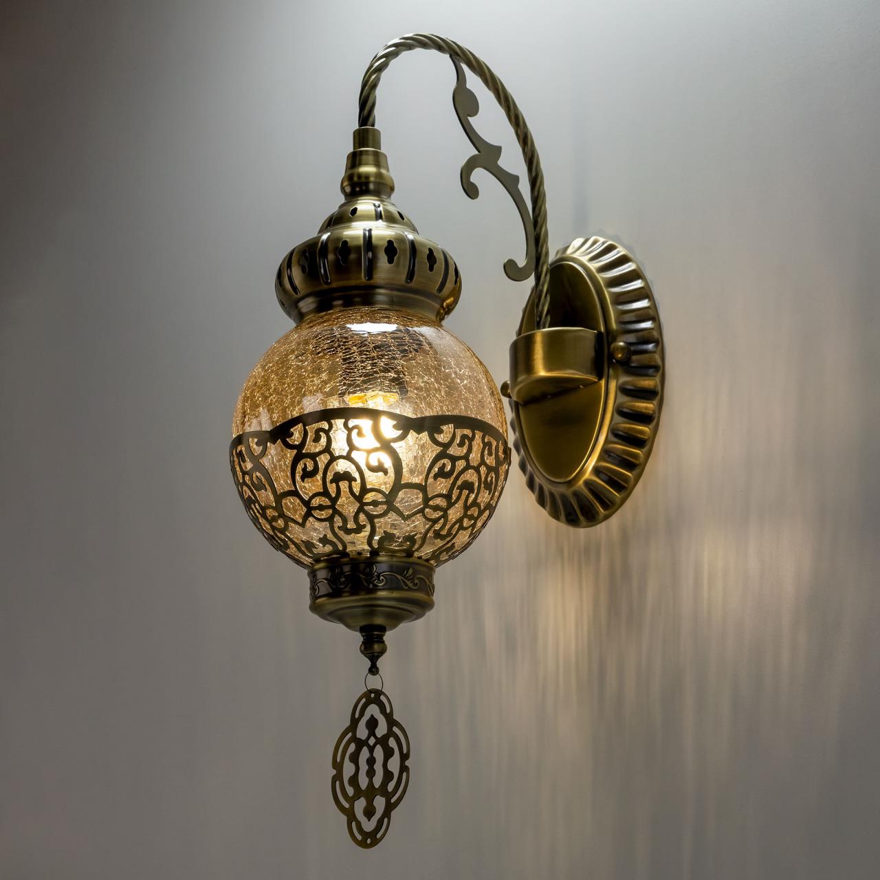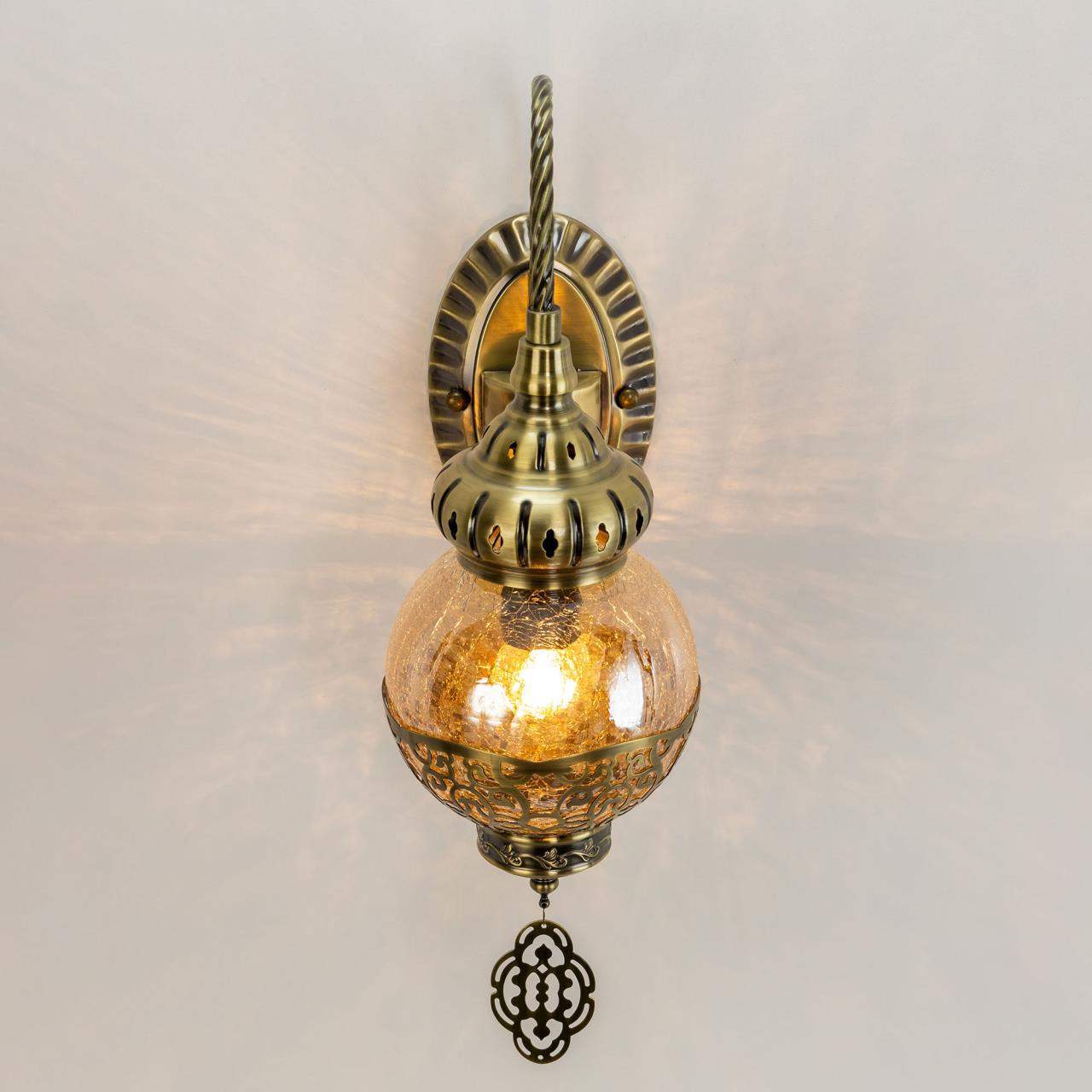 Восточный настенный светильник CL419313 производитель Citilux относится к серии Каир с одним плафоном. Корпус металлический, цвет бронза. Плафон в форме шара, изготовлен из прозрачного стекла медового оттенка, украшен декоративными, ажурными элементами. В изделии используется лампа с цоколем Е27, максимальной мощностью для ламп накаливания 75Вт. Светодиодные лампы можно устанавливать более яркие. Тип крепления к стене – планка. Бра Каир CL419313 прекрасный вариант для атмосферного освещения интерьеров квартир и загородных домов, выполненных в восточном стиле. Это великолепное решение при оформлении уютных кафе, баров и ресторанов , страна бренда Дания.Купить модель CL419313 спешите в интернет-магазине 220svet.