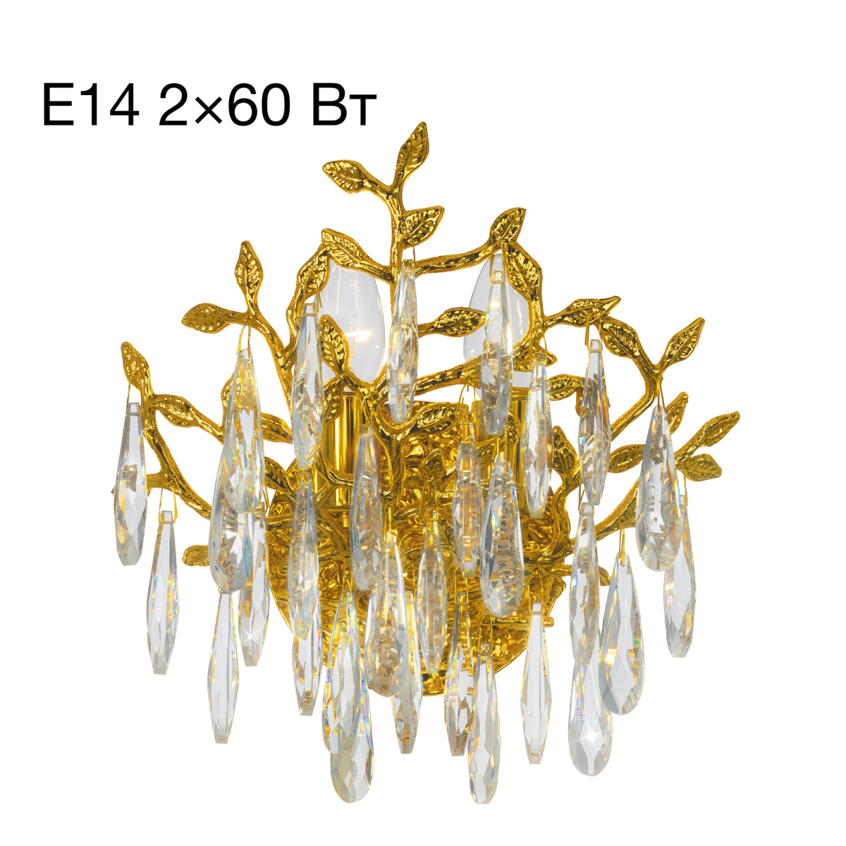 В изделии используются 2 лампы с цоколем Е14, максимальной мощностью для ламп накаливания 60Вт (лампы в комплект не входят, приобретаются отдельно). Рекомендуем устанавливать прозрачные светодиодные филаментные лампы.