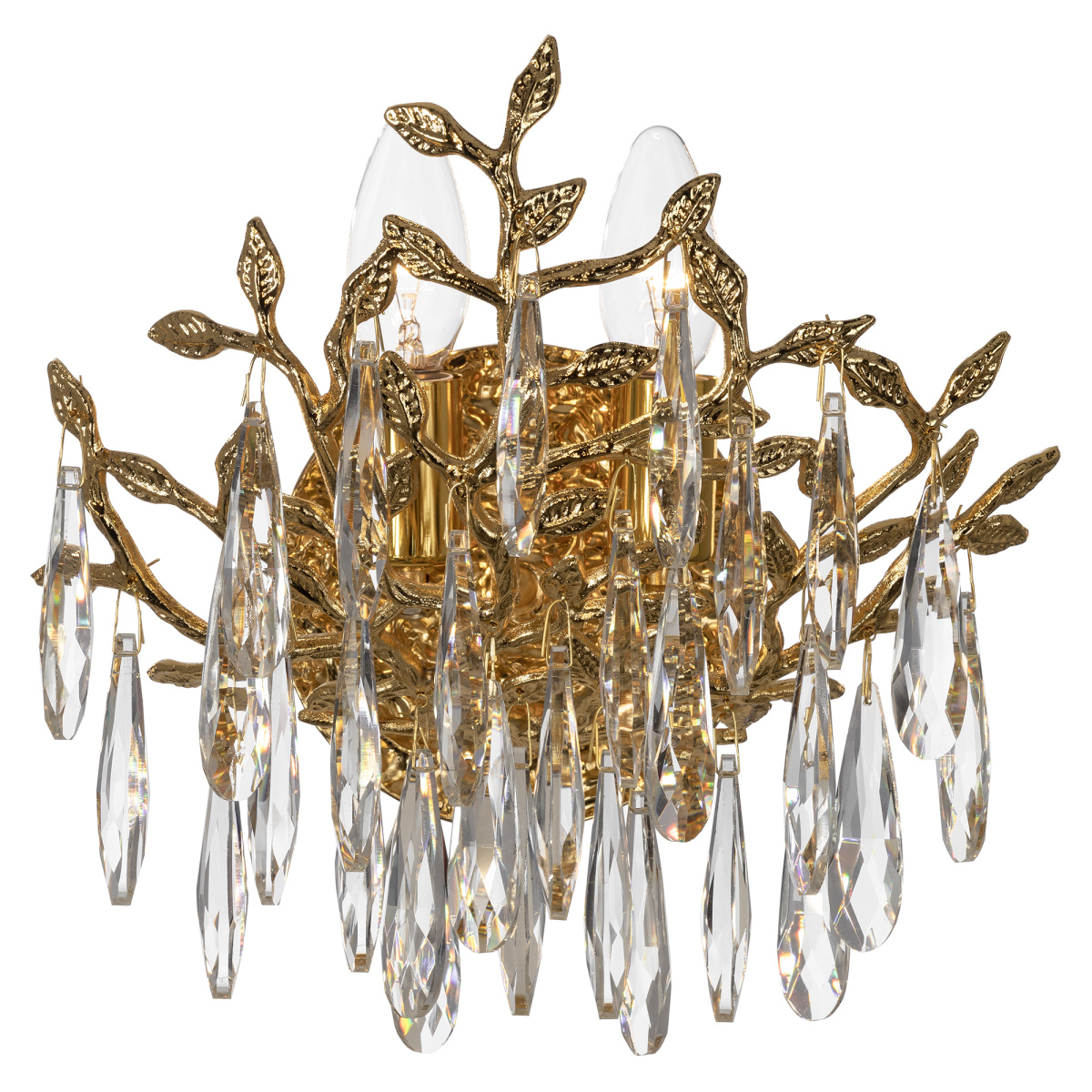 Потрясающий хрустальный настенный светильник Citilux RITZ CL310022 является ярким представителем современной классики. Корпус металлический благородного золотого цвета. Сложный каркас с флористическими мотивами изготовлен методом точного литья. Модель украшена кристально чистыми хрустальными подвесками с искусной огранкой.