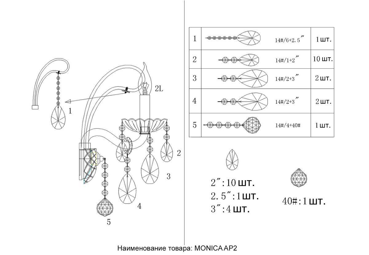 Бра Crystal Lux MONICA AP2 GOLD в Белгороде