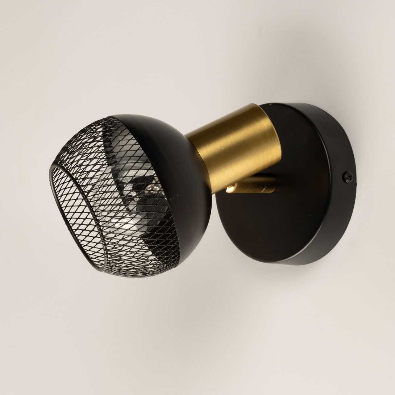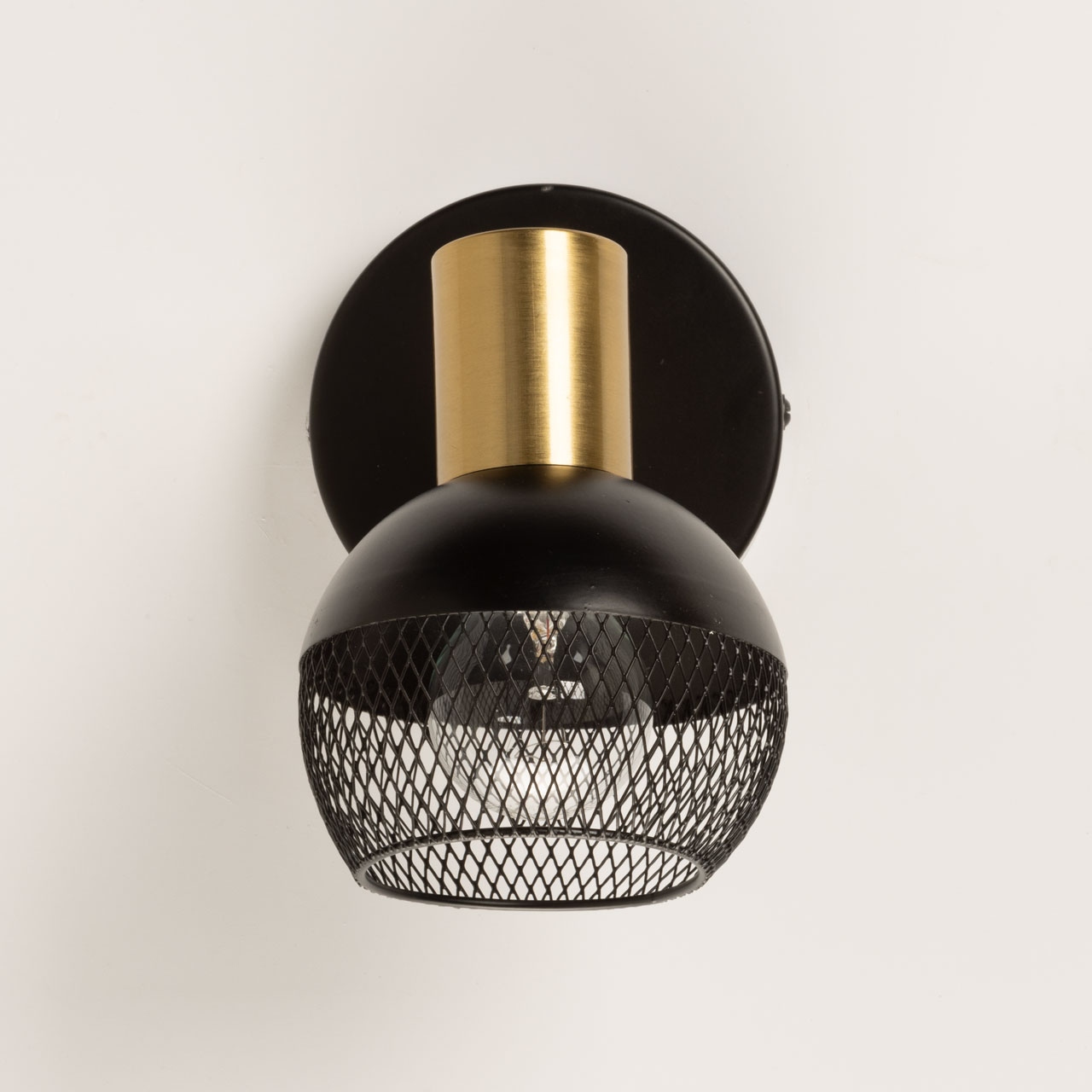 Металлическое основание настенного бра и плафон окрашены в черный цвет. Отдельные элементы основания гальванизированы в цвет латуни.