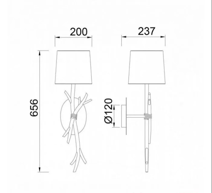- Диаметр плафона (абажура): 200