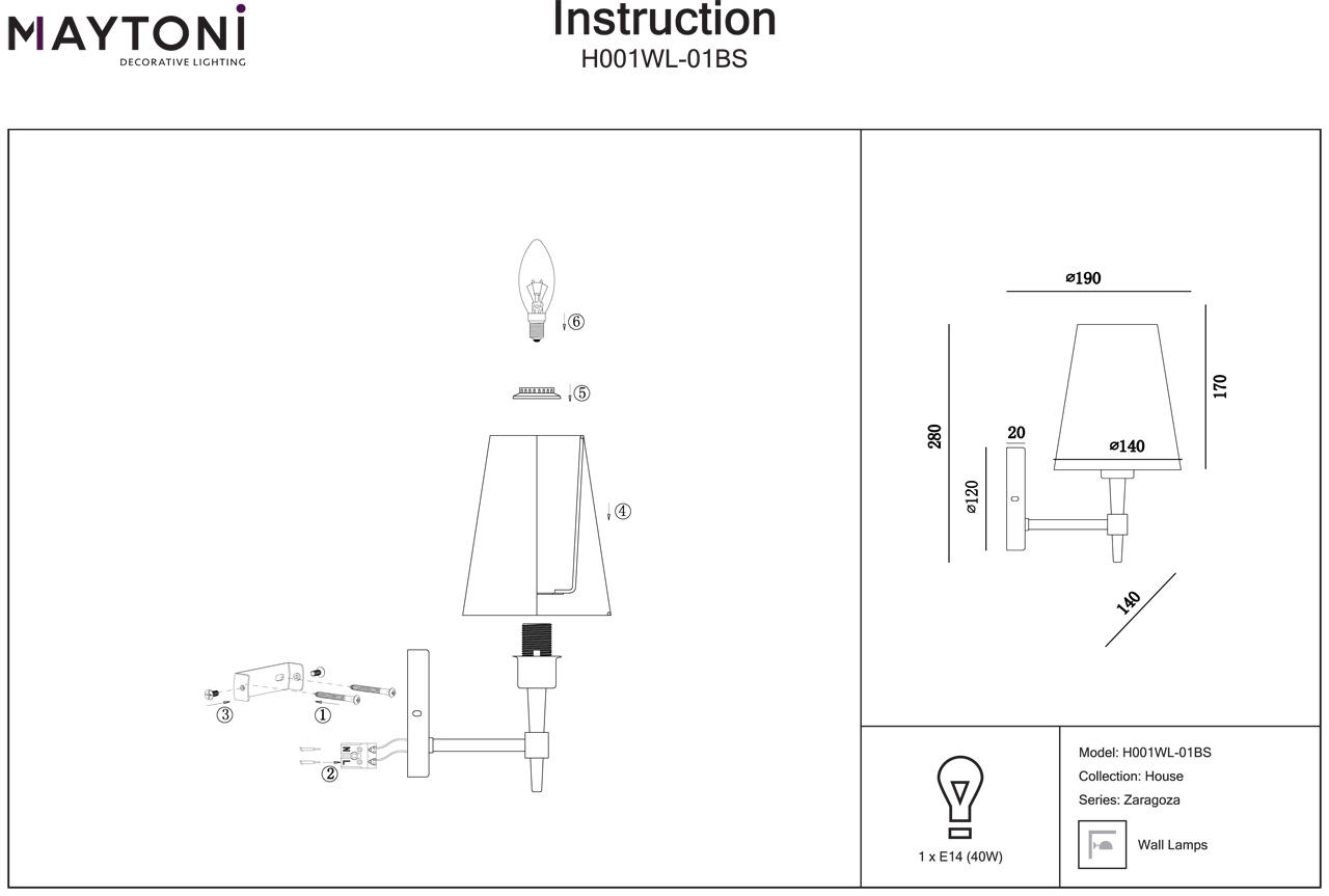 Купить "Бра Maytoni Zaragoza H001WL-01BS"