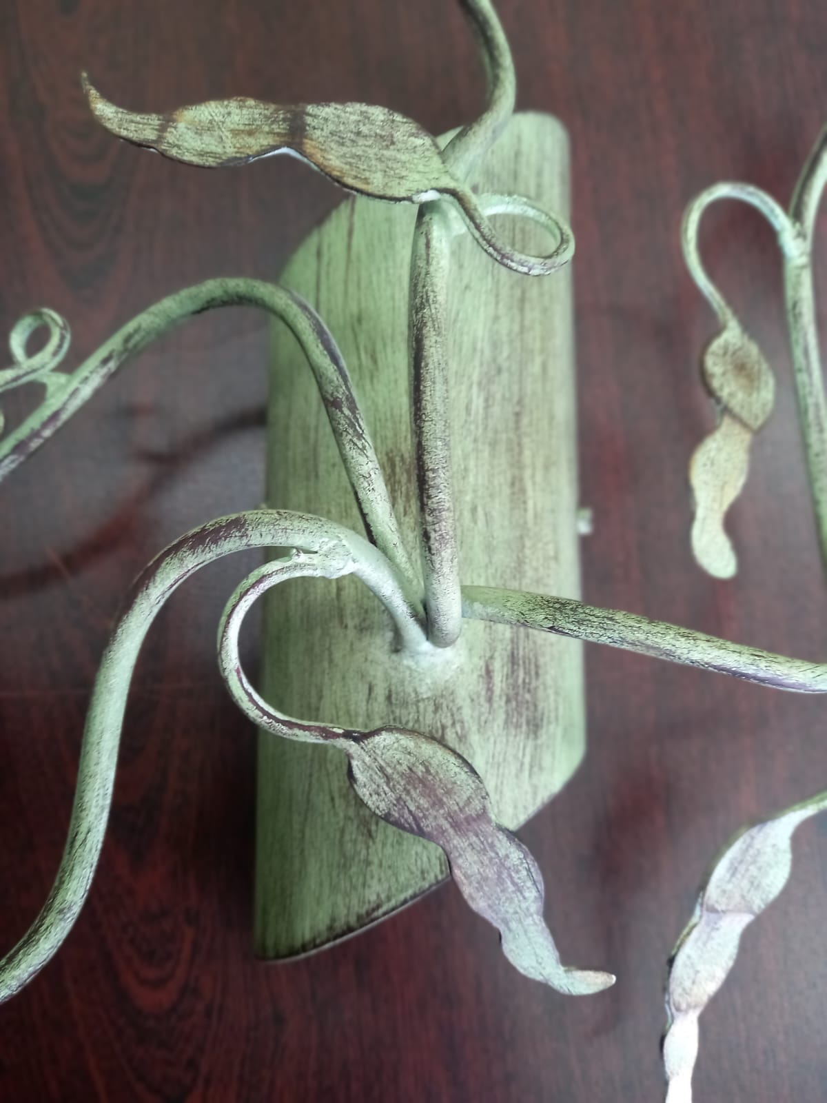 Настенный светильник MM Lampadari 6211/A4__V2291. Арматура из кованого металла светло-зеленого цвета, плафоны в виде цветов из стекла прозрачно-янтарного цвета. Цоколь G4.