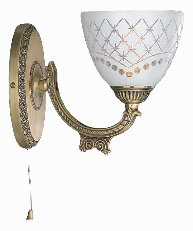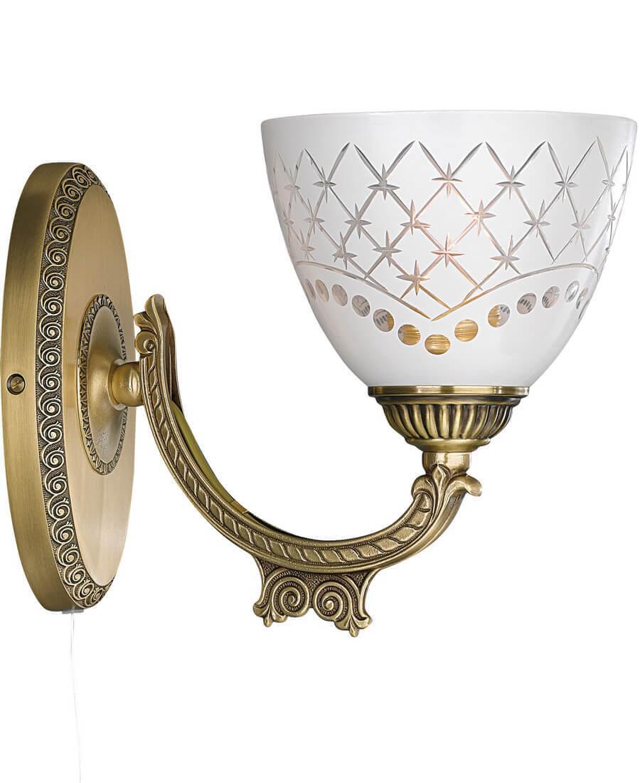 Бра Reccagni Angelo A 7052/1 Итальянского производсва – уникальное сочетание высокого качества и удивительных фактур. Этот светильник Классического стиля хорошо подойдет Для гостиной и придаст помещению мягкий и приятный свет. Плафоны белые из стекла. Арматура бронза из металла. Кол-во ламп - 1шт. Общая мощность 60W