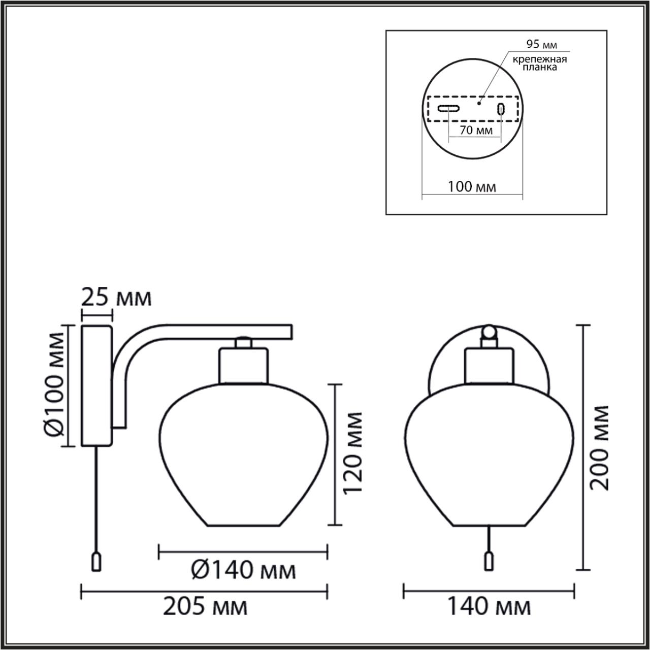 - Форма плафона: Бокал