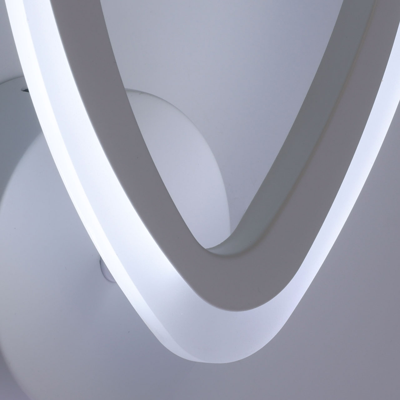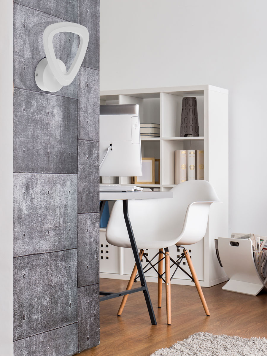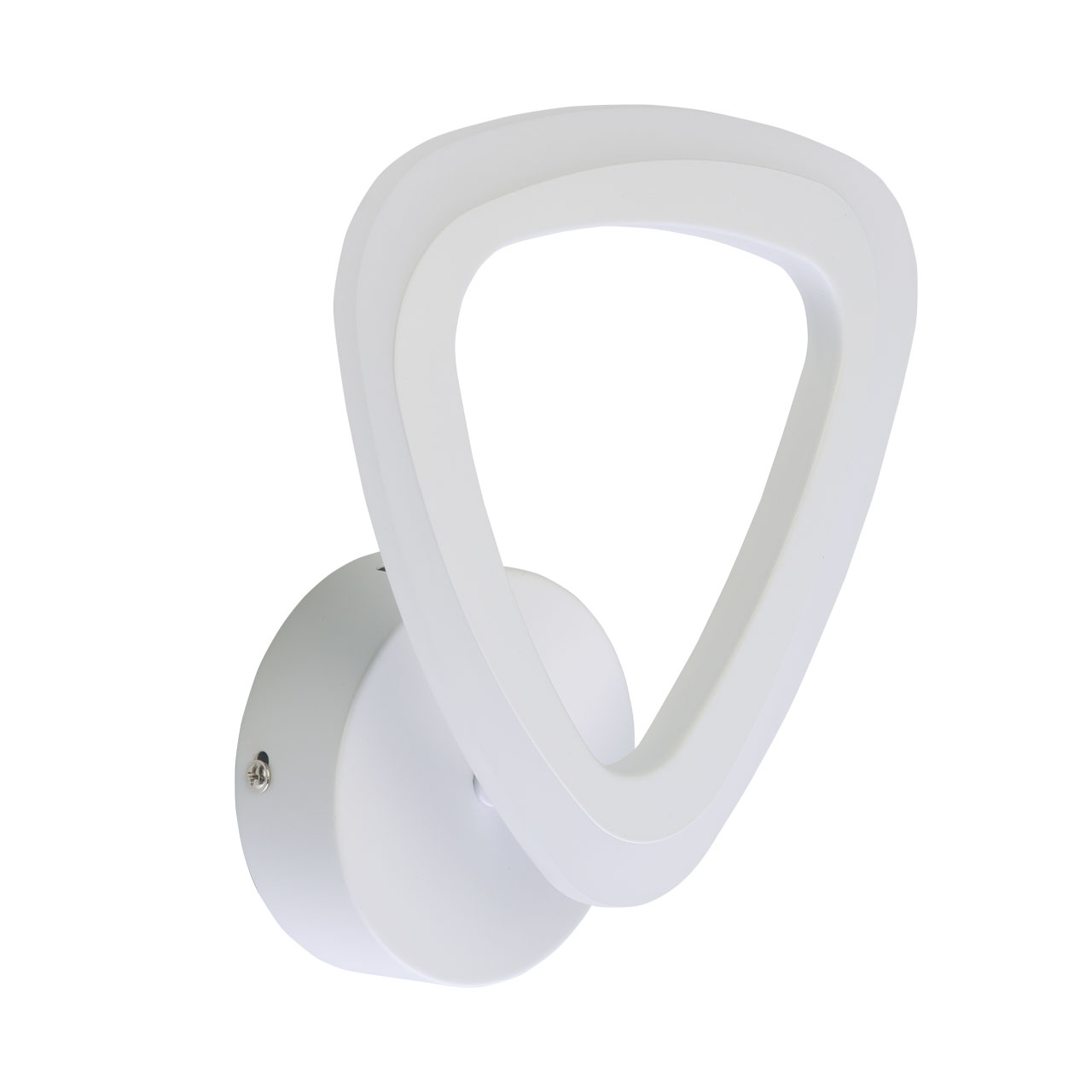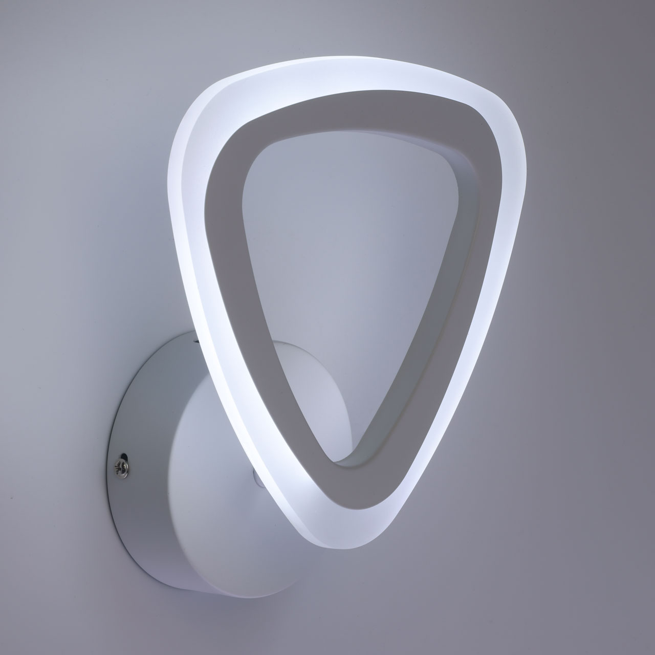 Металлическое основание настенного бра окрашено в белый цвет. Корпус плафона выполнен из сплава алюминия с цинком и окрашен в цвет основания. Светодиодные источники света закрыты белым матовым акрилом.