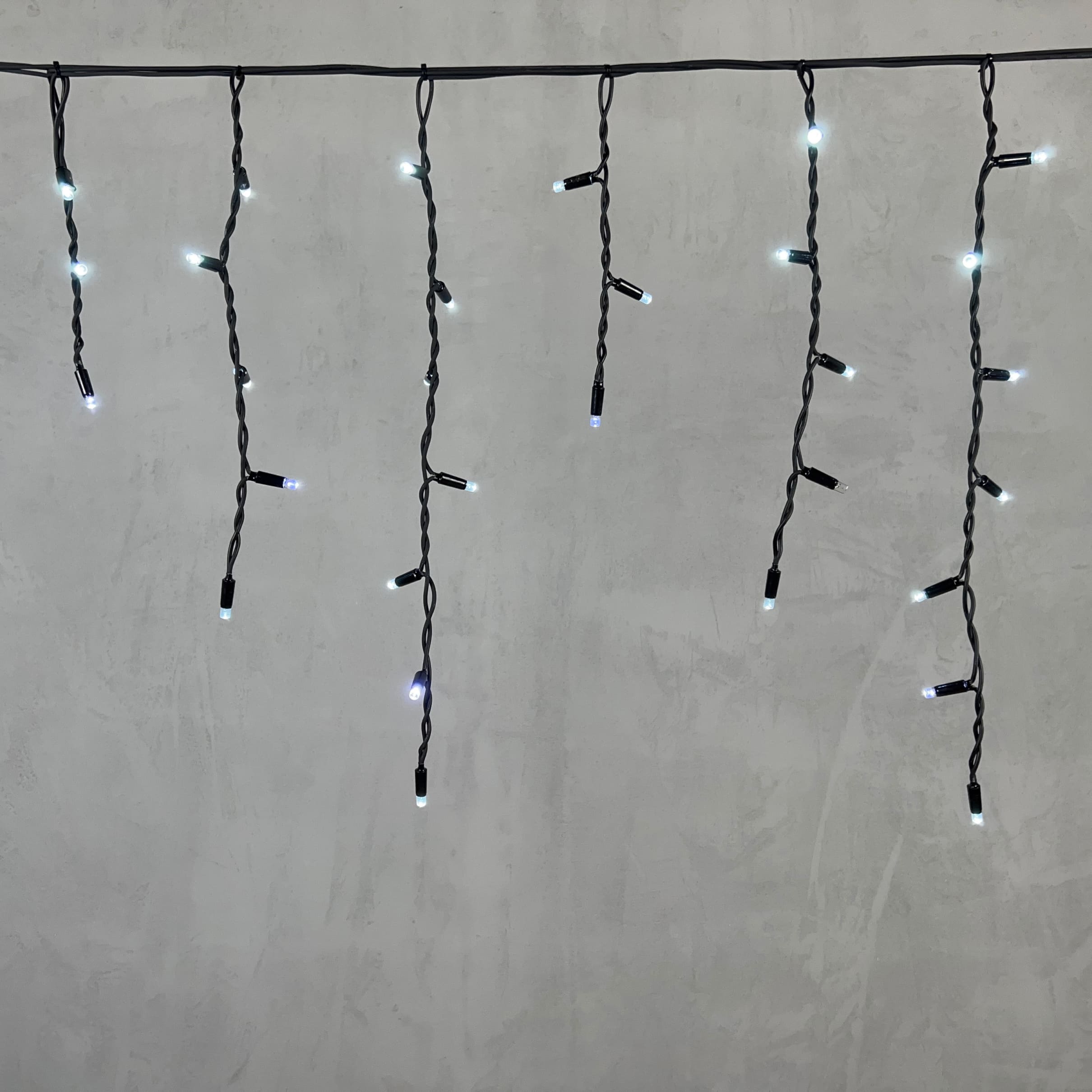 Гирлянда Бахрома 3, 1 x 0, 5 м Белая с Мерцанием Белого Диода 220В, 120 LED, Провод Черный Каучук, IP65 LTC LL120BLW-1-2W в Белгороде