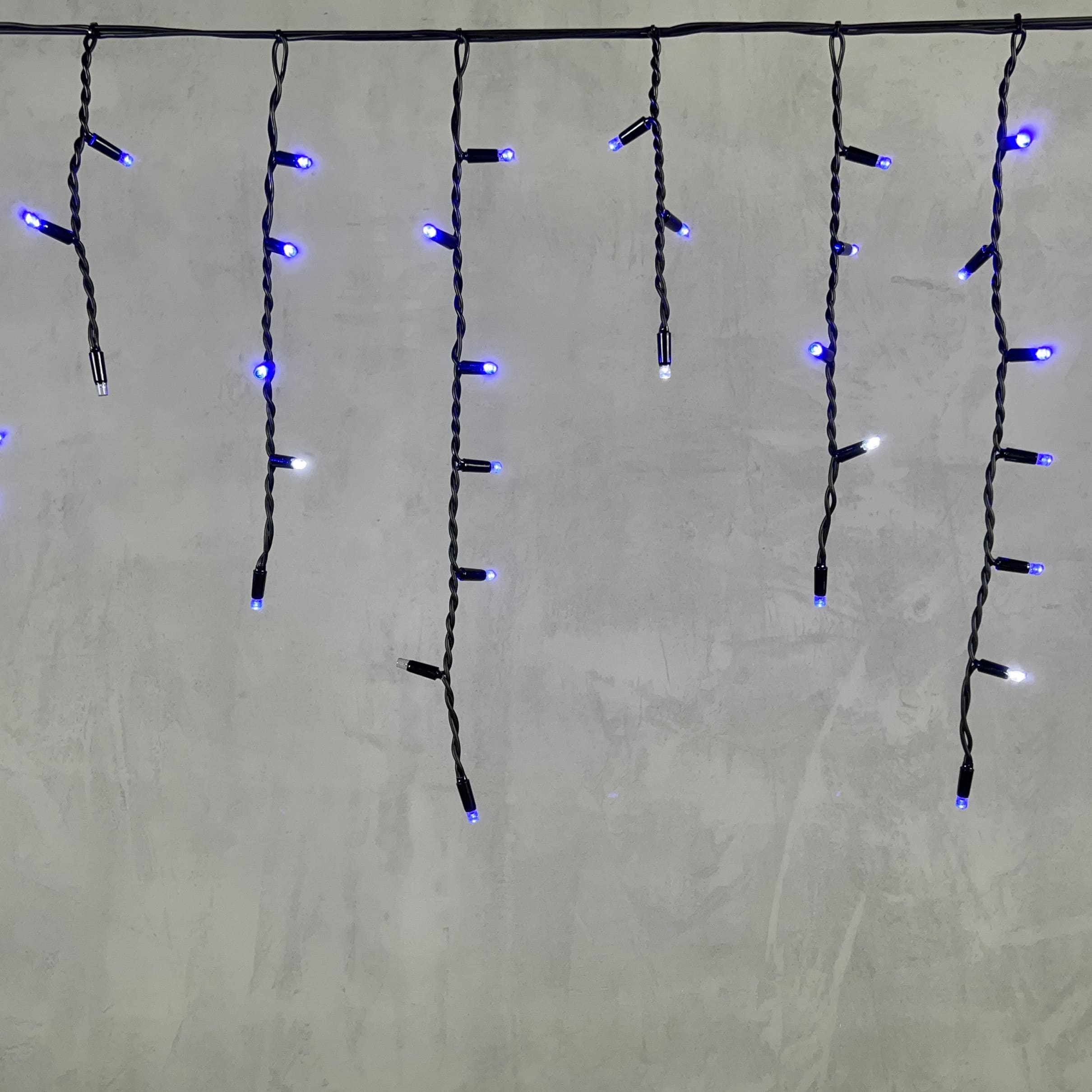 Гирлянда Бахрома 3, 1 x 0, 5 м Синяя с Мерцанием Белого Диода 220В, 120 LED, Провод Черный Каучук, IP65 LTC LL120BLW-1-2B в Белгороде