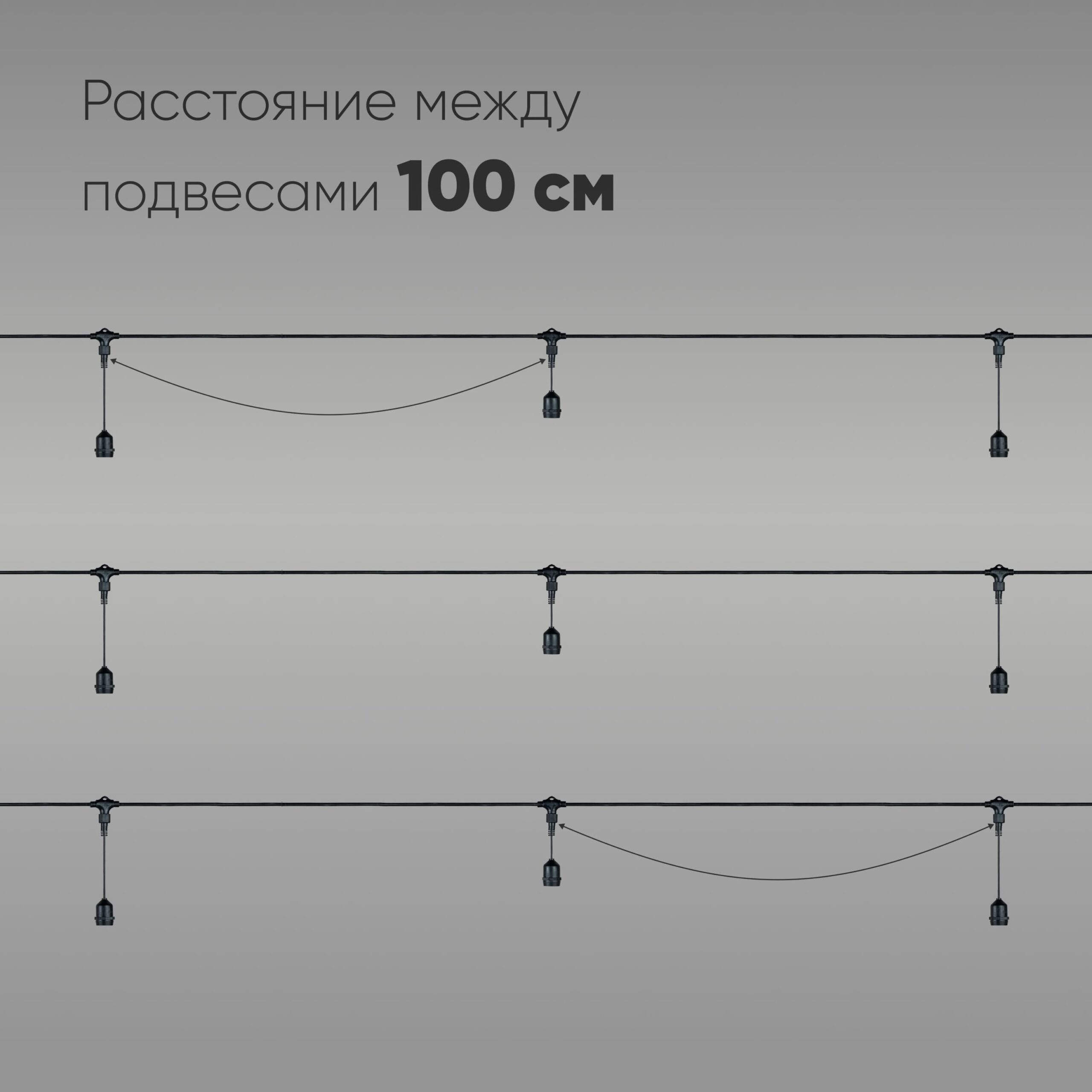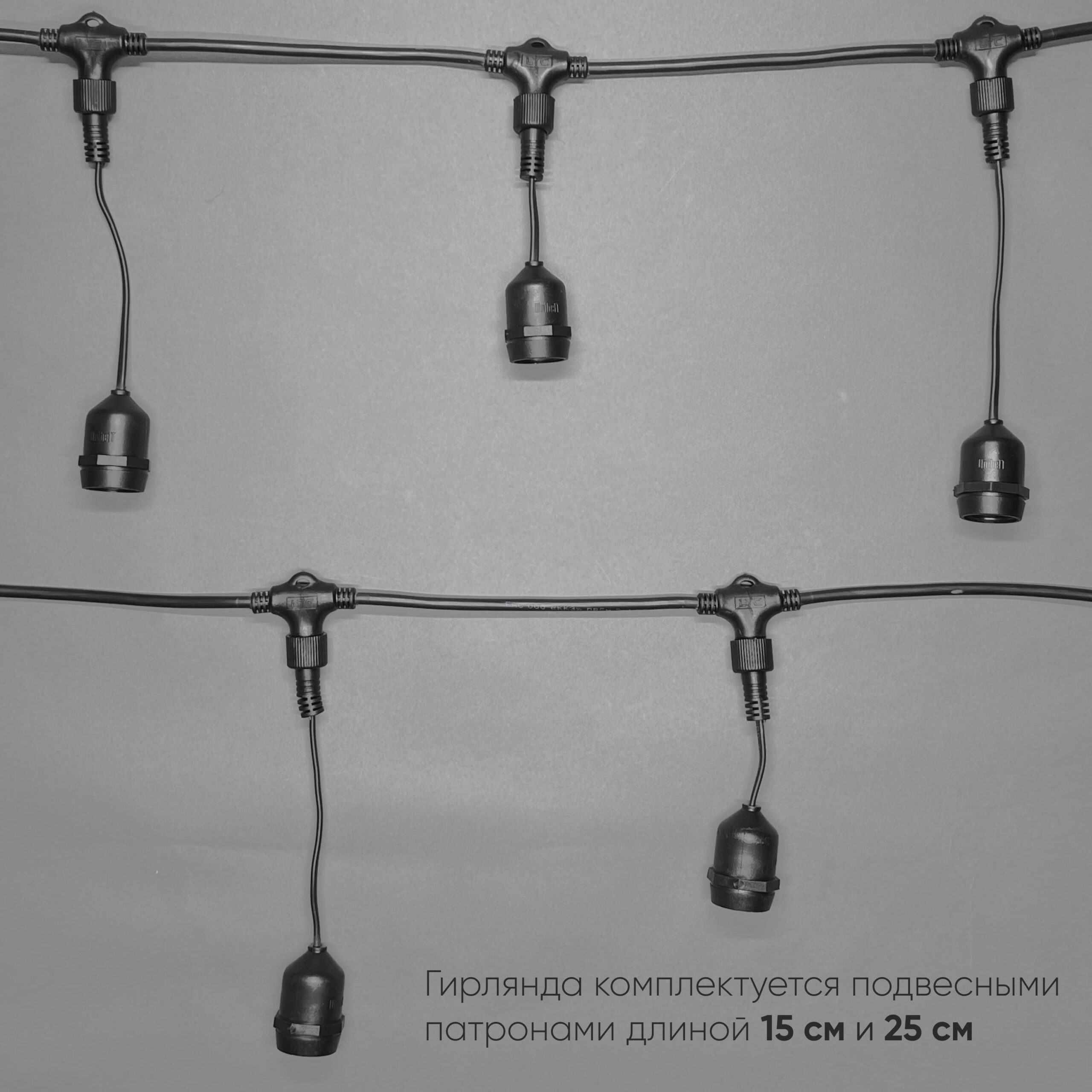 Белт-Лайт UNIBELT 10м, Провод Черный Каучук, Шаг 100 см, 10 Подвесных Патронов, IP65 LTC UBL10m/10L-1 в Белгороде