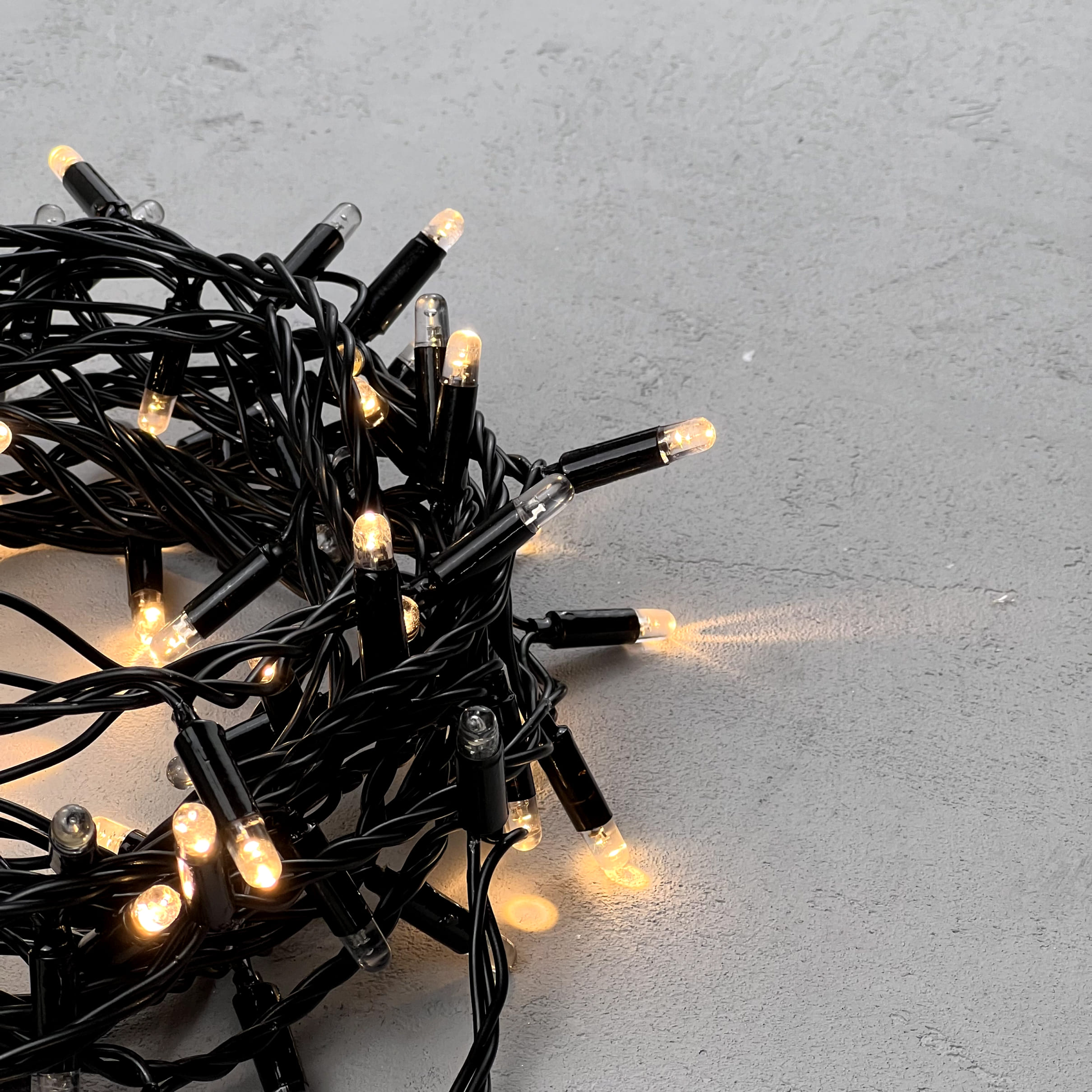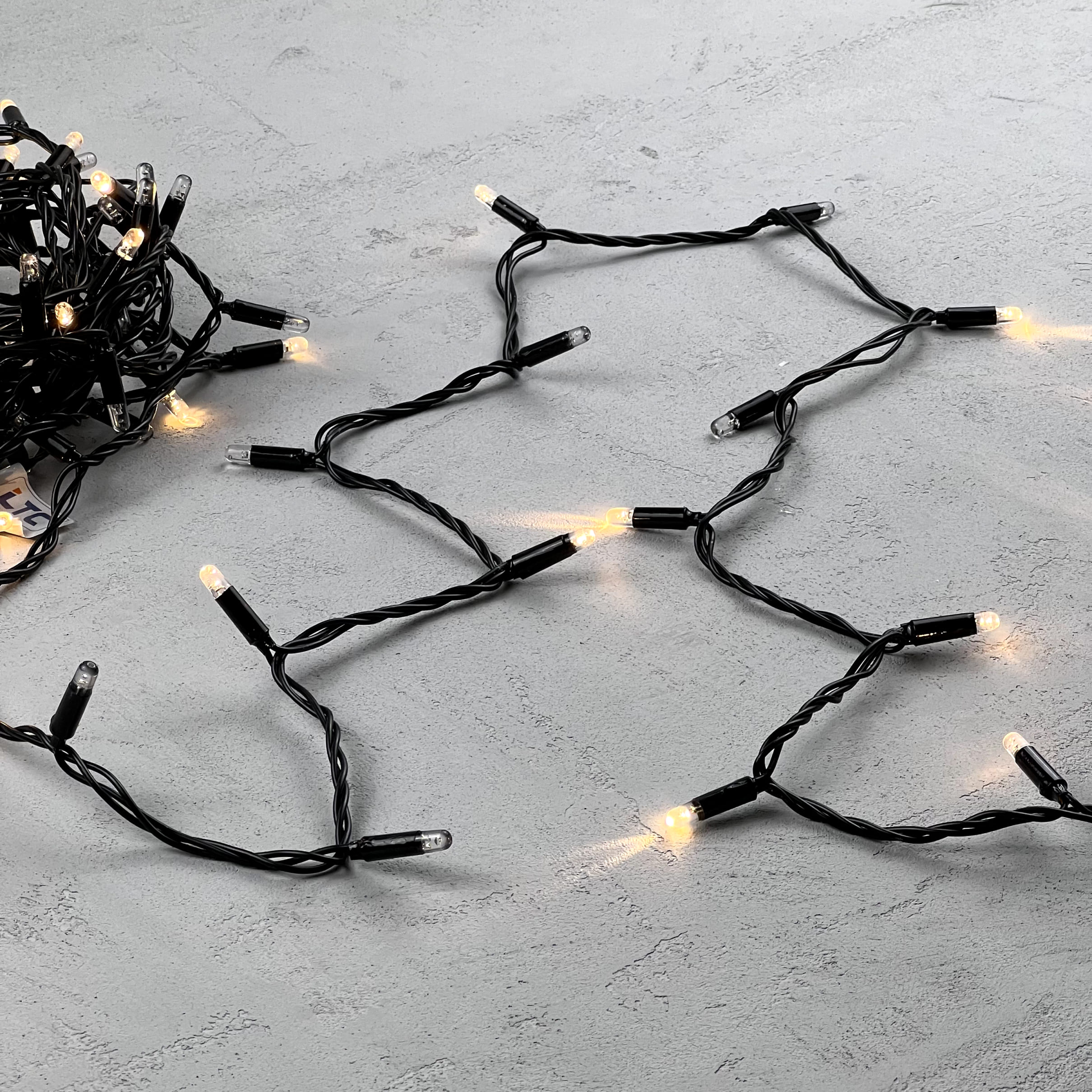 Купить "Гирлянда Нить с Колпачком 10м Тепло-Белая с Мерцанием Каждого Диода 24В, 100 LED, Провод Черный ПВХ, IP65 LTC PST100ABLCAP-11-1WW"