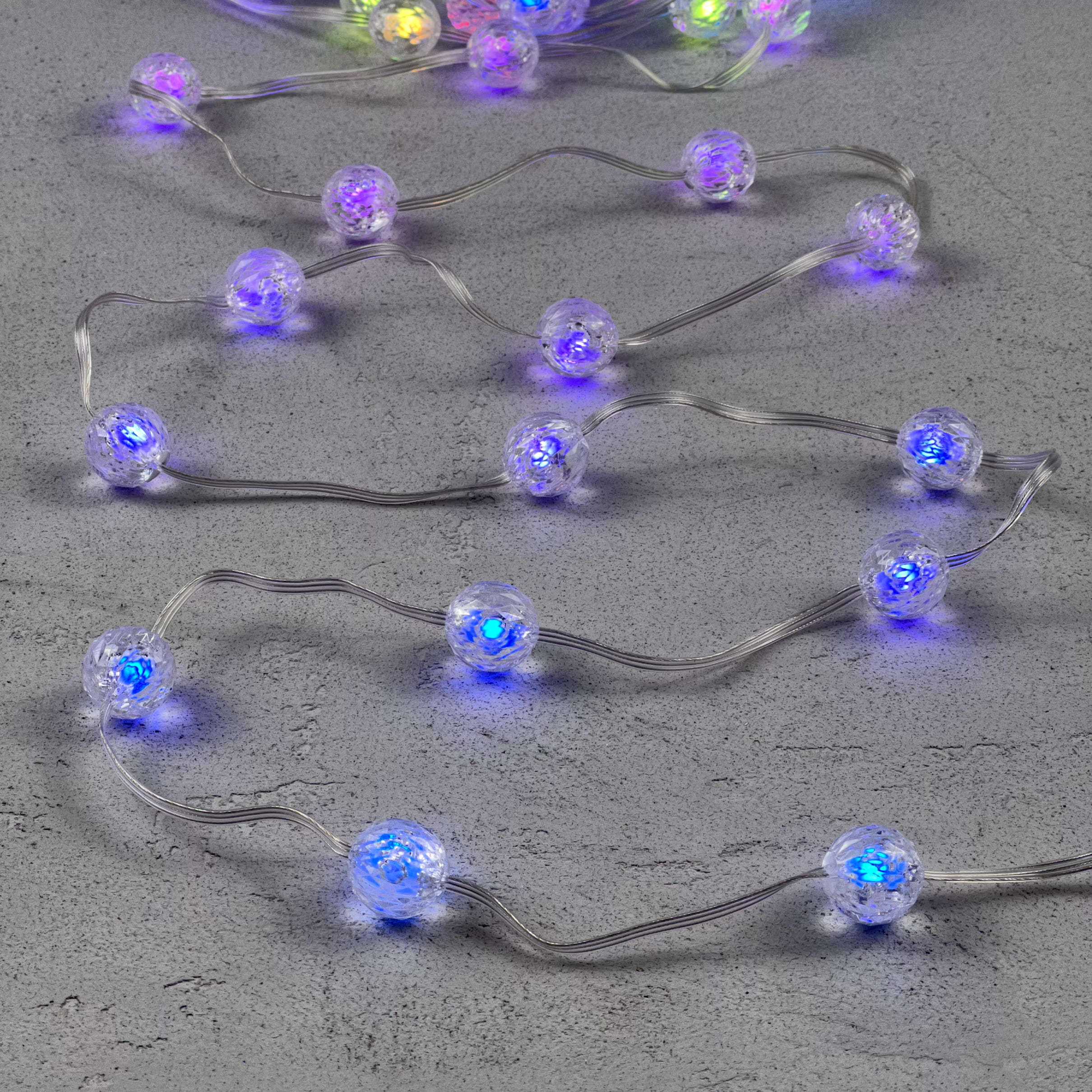 Купить "Гирлянда Шарики Смарт 10м Разноцветная с Управлением 5В, Диаметр Шарика 20мм, 100 LED, Провод Прозрачный ПВХ, IP44 LTC MBSmart100-10-5RGB"