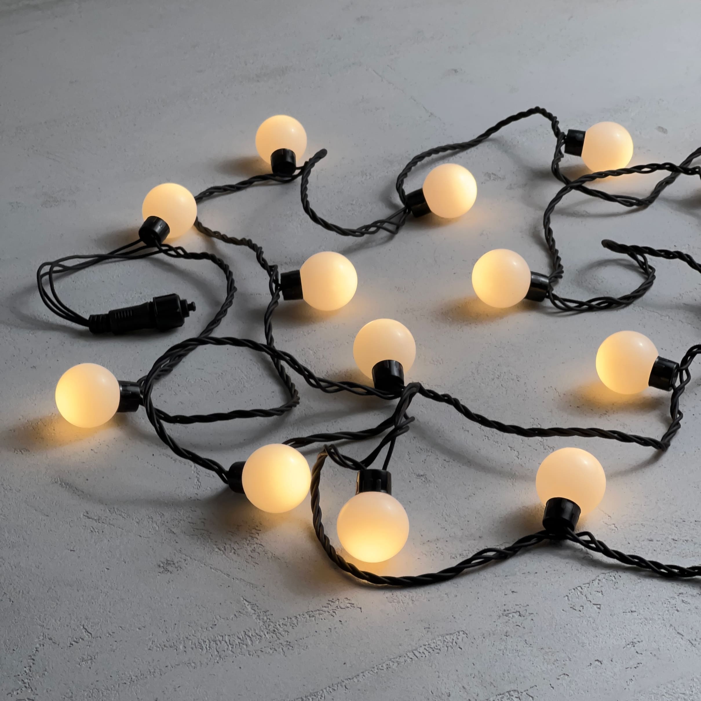 Купить "Гирлянда «Шарики» 5м Тепло-Белая 220В, Диаметр Шарика 40мм, 20 LED, Провод Черный Каучук, IP65 LTC HB20-1-2WW"
