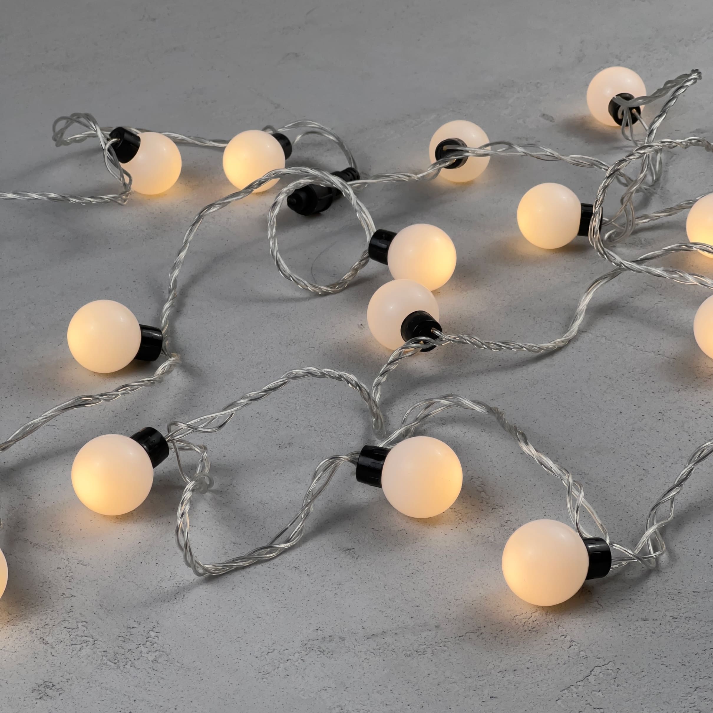 Купить "Гирлянда «Шарики» 5м Тепло-Белая 220В, Диаметр Шарика 40мм, 20 LED, Провод Прозрачный Силикон, IP65 LTC HB20-10-2WW"