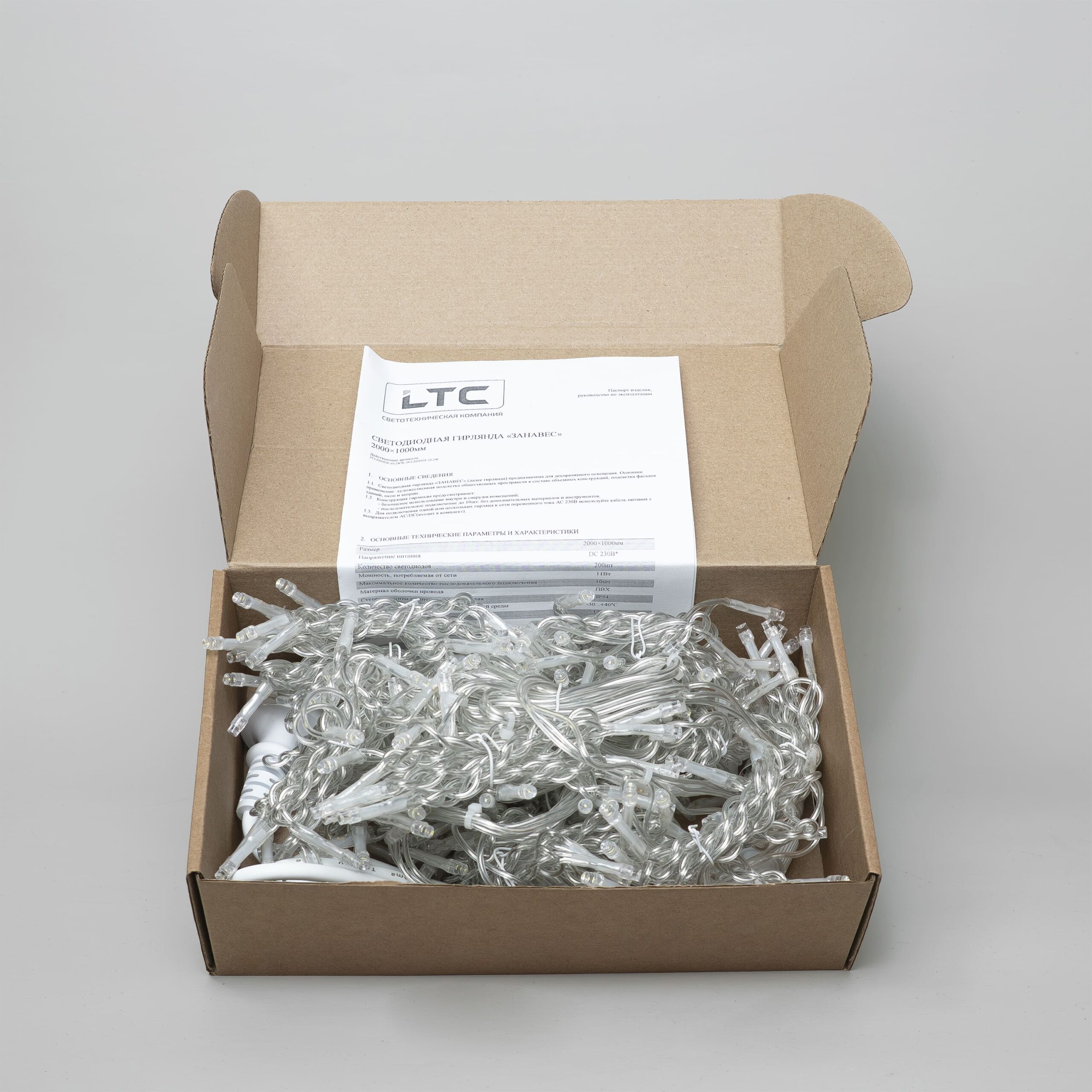 Гирлянда Занавес Облегченный 2 x 1 м Тепло-Белый 220В, 200 LED, Провод Прозрачный ПВХ, IP54 LTC PCL200NOT-10-2WW в Белгороде