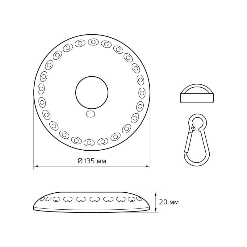 - Диаметр: 135 мм (13.5 см)