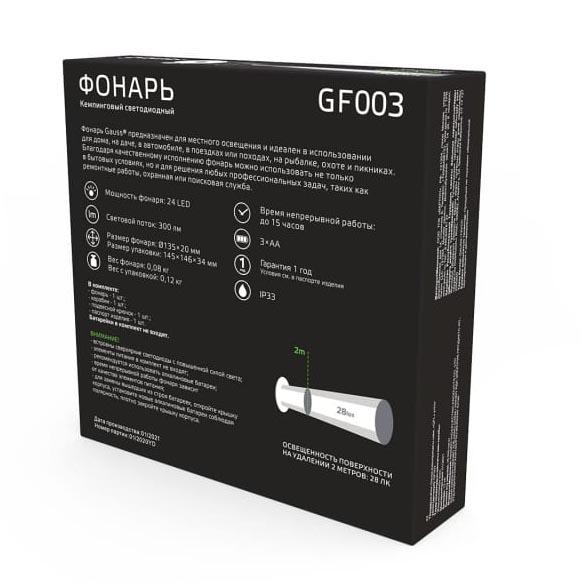 Купить "Кемпинговый светодиодный фонарь Gauss от батареек 135х20 300 лм GF003"
