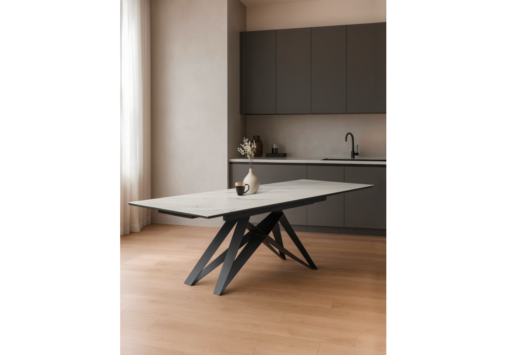 Керамический стол раздвижной Woodville Блэкберн 160(220)х89 белый мрамор snow white / черный 625943 в Белгороде