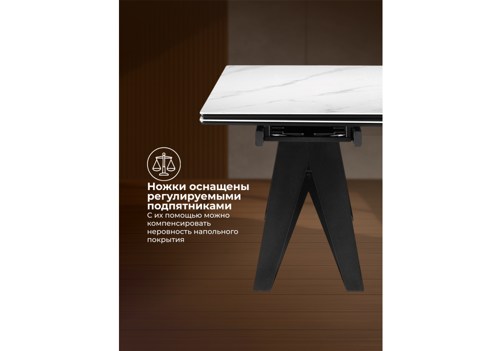 Купить "Керамический стол раздвижной Woodville Блэкберн 160(220)х89 белый мрамор snow white / черный 625943"