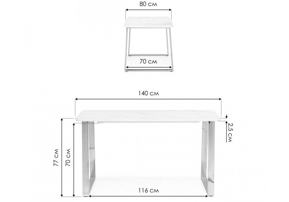 Материал каркаса - Металл; Материал ножек - Металл; Материал столешницы - Керамика; Цвет каркаса - Золотой; Цвет ножек - Золотой; Цвет столешницы - Черный; Ширина - 80; Высота - 77; Длина - 140;