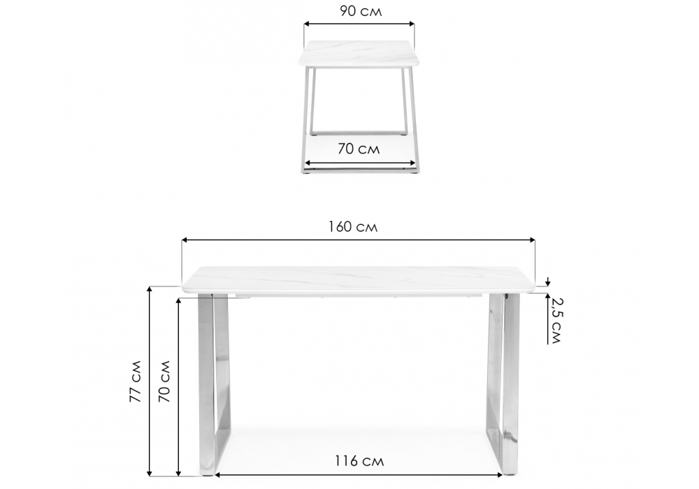 Материал каркаса - Металл; Материал ножек - Металл; Материал столешницы - Керамика; Цвет каркаса - Золотой; Цвет ножек - Золотой; Цвет столешницы - Черный; Ширина - 90; Высота - 77; Длина - 160;