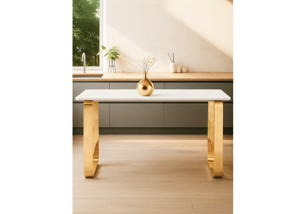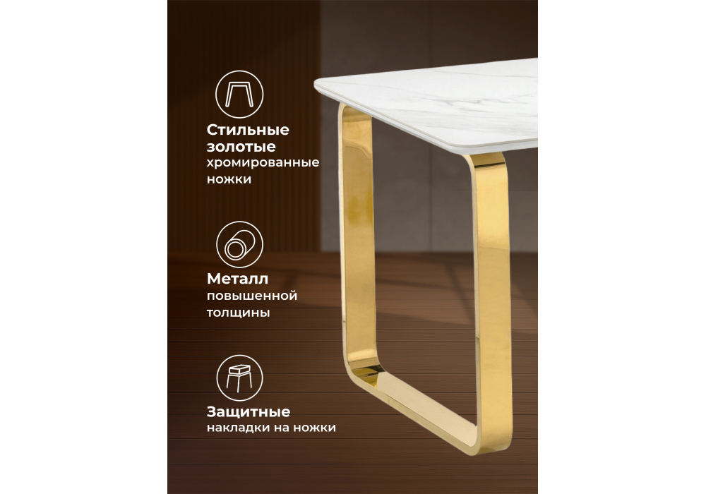 Керамический стол Woodville Селена 4 140х80х77 белый мрамор / золото 571414 в Белгороде