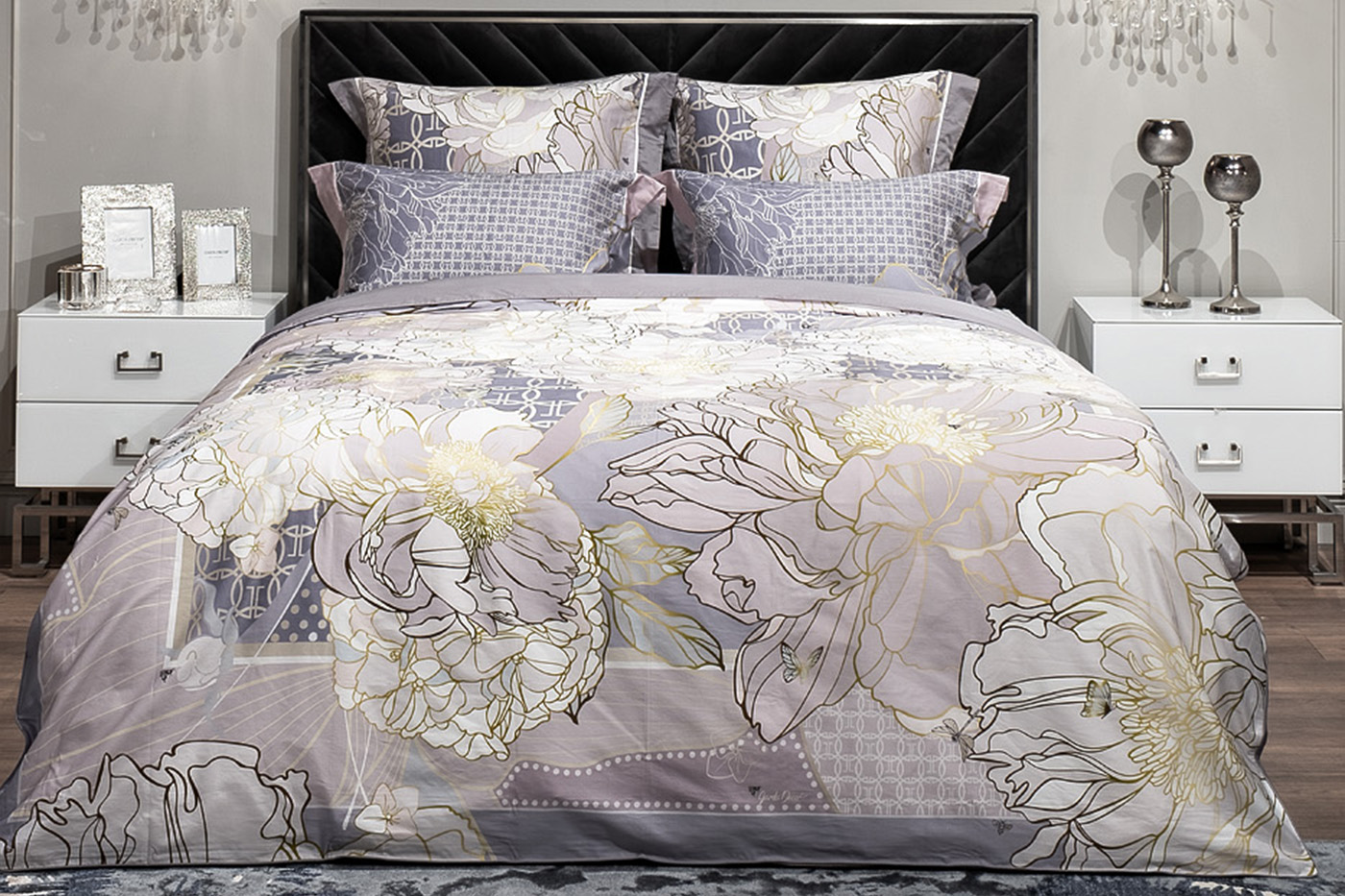 Купить "Комплект наволочек сатин принт Пионы серый 70*70 Garda Decor 130HB-00029"