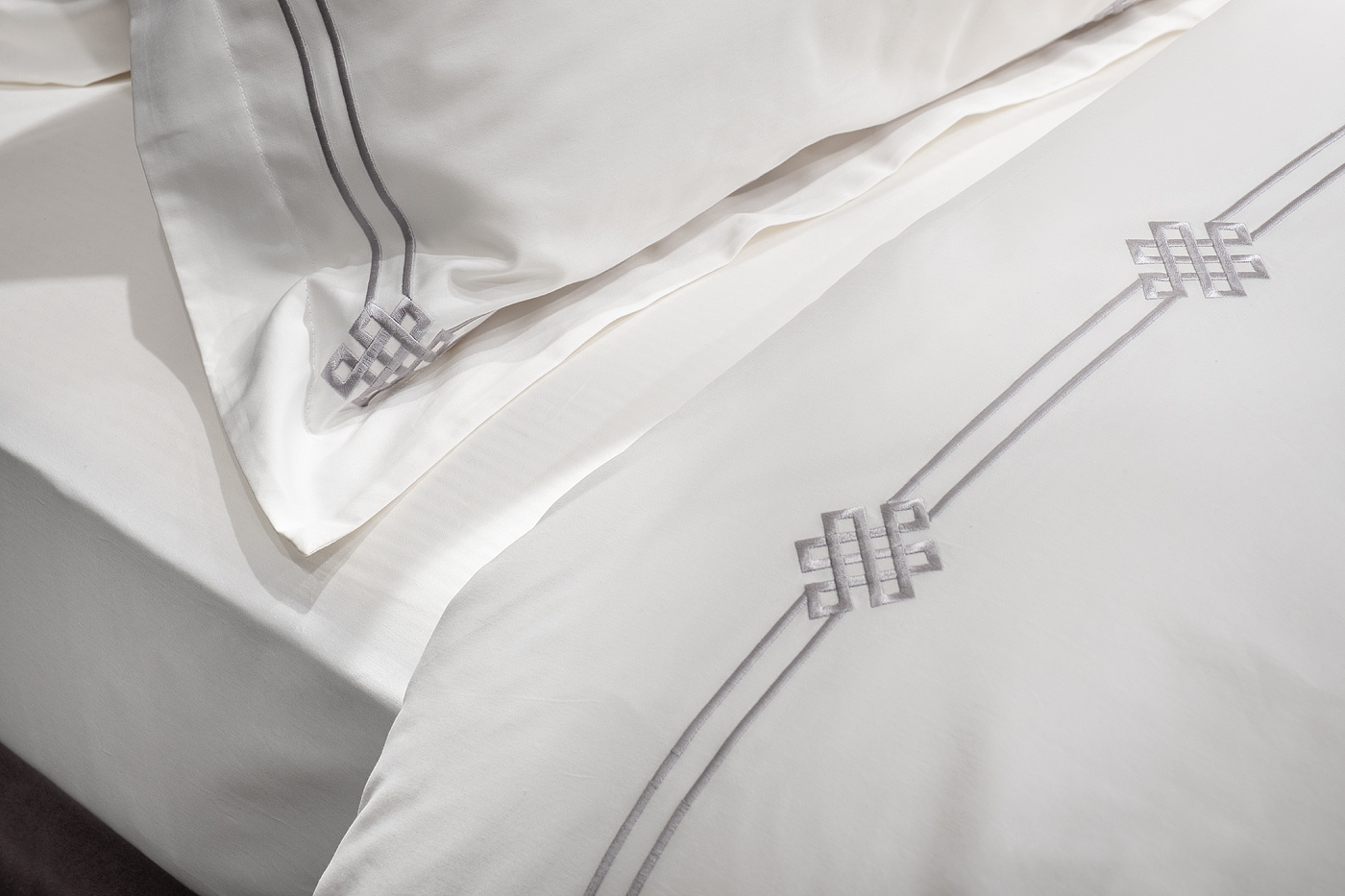 Классический комплект «Арктик» изготовлен из 100% хлопка-сатина высокой плотности 400ТС.В данный комплект входят: Пододеяльник 145*210-2шт, наволочка 50*70-2 шт и простыня 270*280. Белое белье украшает изящная серая вышивка, которая обрамляет пододеяльник и наволочки по периметру. Этот сложный узор – переплетённые линии с элементами Арт-деко. Модель привлекает внимание красивым контрастом между белой тканью и орнаментом оттенка старинного серебра. Вышивка на постельном белье - дорогой элемент, который придает белью более выраженный вид, создавая объем и, подчеркивая, ценность постельного белья. Оригинальная геометрия орнамента подойдет и для современного интерьера, и для эффектного стиля ар-деко, и для классического дизайна. Уход: Машинная стирка при максимальной температуре 40С, мягкий режим. Стирать моющими средствами для цветных тканей. Не отбеливать. Барабанная сушка возможна, обычная температура. Гладить с изнаночной стороны при максимальной температуре утюга. Сухая химчистка запрещена.