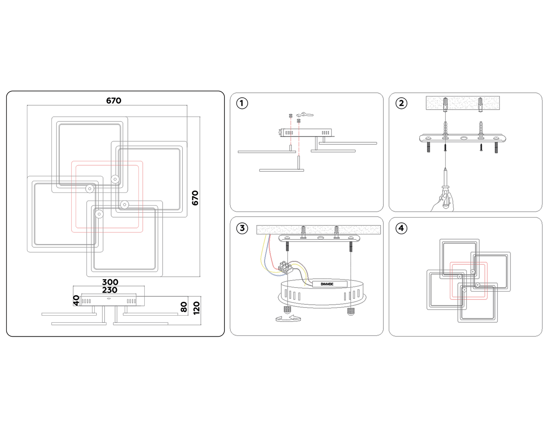 - Форма плафона: Квадратный