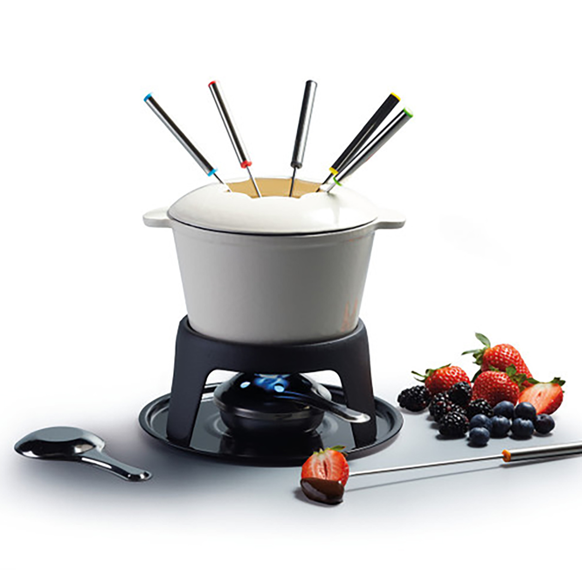 Купить "Набор для приготовления фондю (кастрюля горелка, вилки 6шт.) чугунный покрыт CREAM эмалью KC Kitchen Craft"
