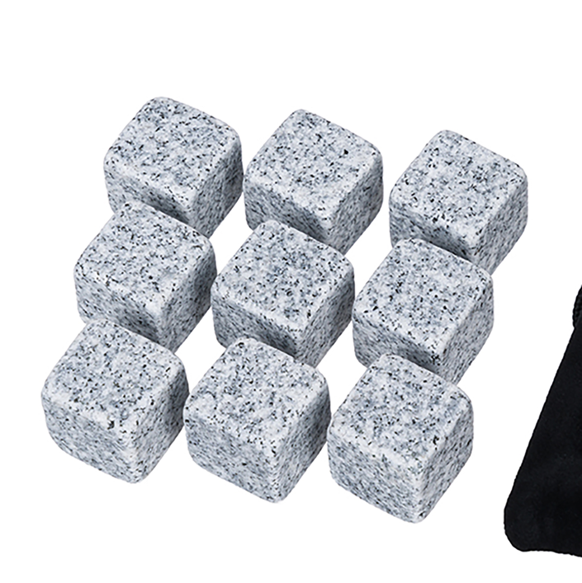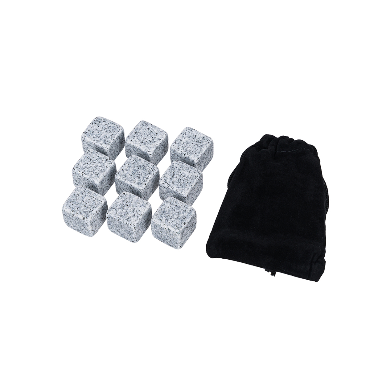 Купить "Набор каменных кубиков для охлаждения виски (кубики гранит 2 см (9 шт.), мешочек для хранения) HomeFeel"