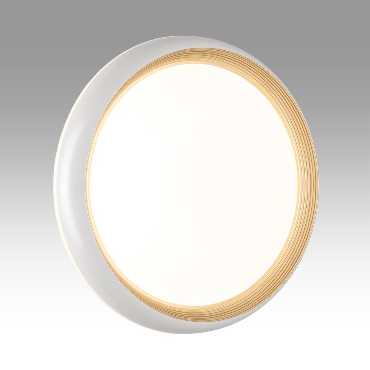 Светильник 7650/EL линии TOFIQ WHITE состоит из металлического основания (базы) и пластикового рассеивателя. Материал рассеивателя - высококачественный пластик марки PMMA 2.0 белого цвета с матовой поверхностью, без текстуры. Пластик обеспечивает светильнику равномерное рассеивание и хорошее светопропускание. Форма плафона: круглая, декорирована ободом из пластика объемной структуры белого и золотого цветов. Степень защиты IP43 позволяет использовать светильник в определенных зонах влажных помещений. В комплект входит заменяемый LED модуль с линзами, мощностью 70Вт, которая соответствует лампе накаливания 610Вт. А также пульт ДУ (с креплением на стену), с помощью которого осуществляется плавное изменение цветовой температуры 3000-6000К, изменение яркости, переход в режим переключения теплого/белого/холодного/ночного света. Светильник имеет функцию "память".