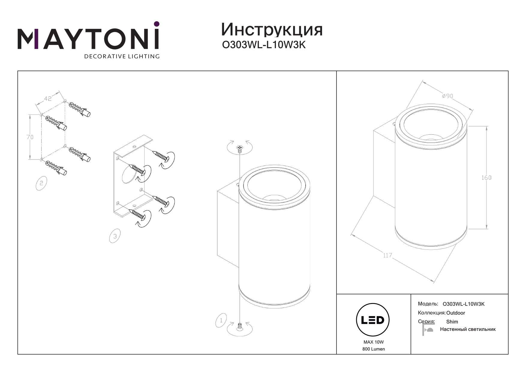 Все характеристики O303WL-L10W3K