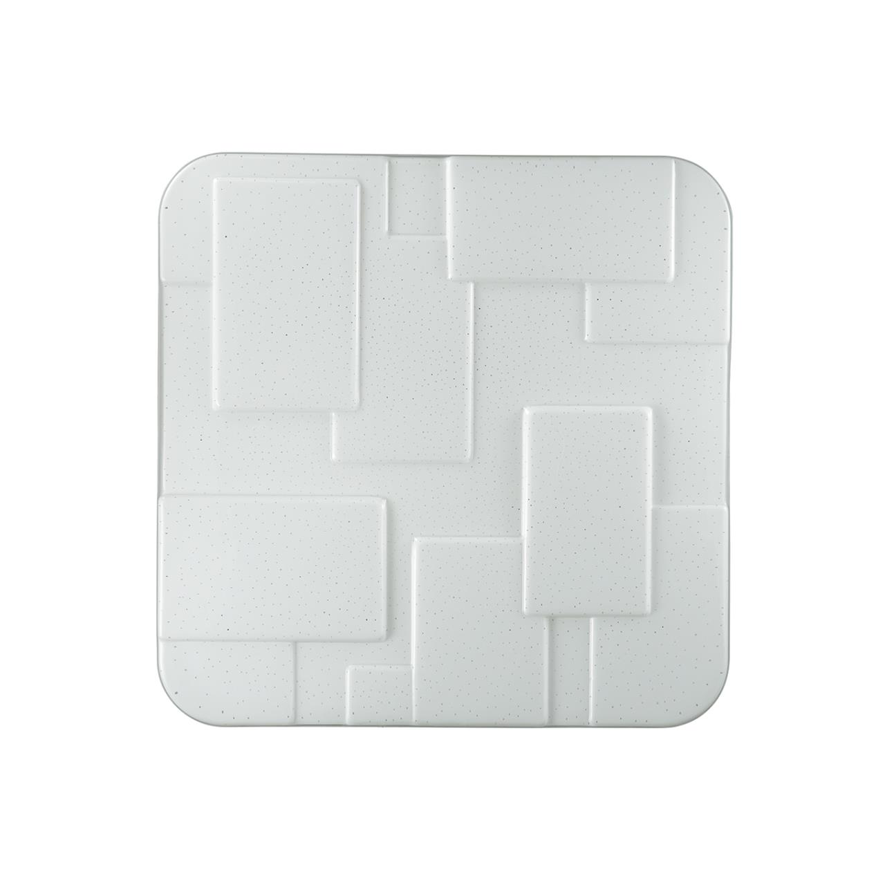 Светильник 2085/DLN линии NORES состоит из металлического основания (базы) и пластикового рассеивателя. Материал рассеивателя — высококачественный акрил белого матового цвета, обеспечивающий светильнику равномерное рассеивание и хорошее светопропускание. Форма плафона: квадратная, в виде рельефного орнамента с геометрическим рисунком, декорирован прозрачными точками, придающими включенному светильнику красивый эффект «звездного мерцания» и переливания. Степень защиты IP43 позволяет использовать светильник в определенных зонах влажных помещений. В комплект входит LED-модуль с линзами мощностью 48 Вт, соответствующей лампе накаливания 515 Вт, а также переключатель температуры цвета (ССT) на драйвере, с помощью которого осуществляется изменение цветовой температуры 3000/4000/6000 К и переход светильника в режим теплого/белого/холодного света. Для установки необходимого режима рекомендуется использовать удлиненный тонкий предмет типа небольшой отвертки.