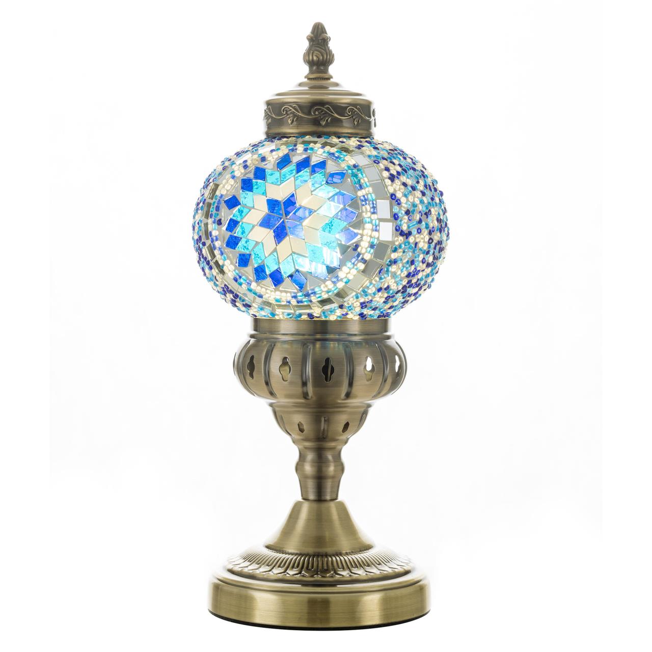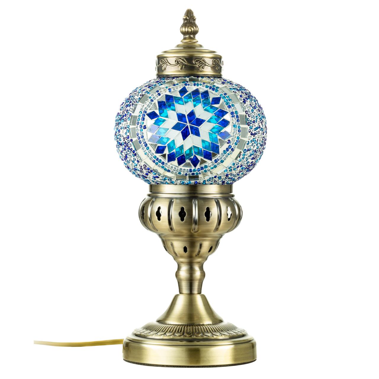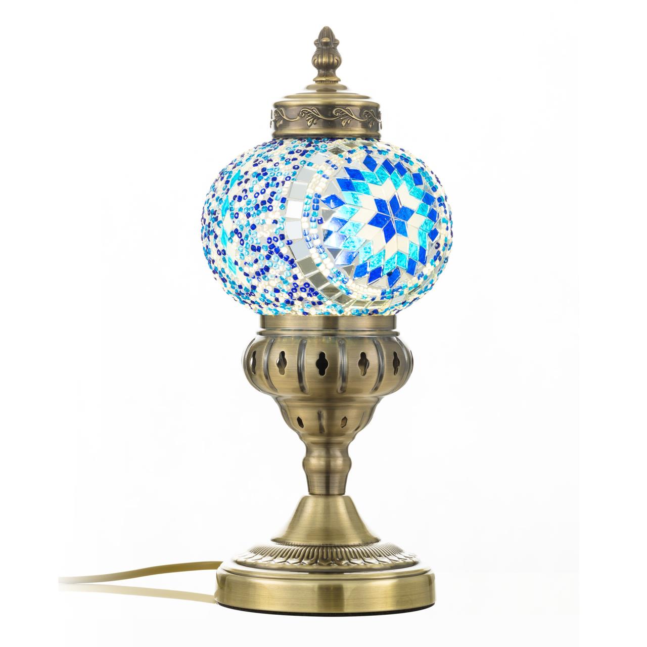 Погрузитесь в атмосферу таинственного Востока с настольным светильником Citilux Каир CL419816! Металлический корпус цвета благородной бронзы украшен изысканной чеканкой, а плафон в форме шара, декорированный стеклянной мозаикой с сине-голубыми оттенками, создаёт мягкое свечение, наполняющее пространство чувством свежести и гармонии.