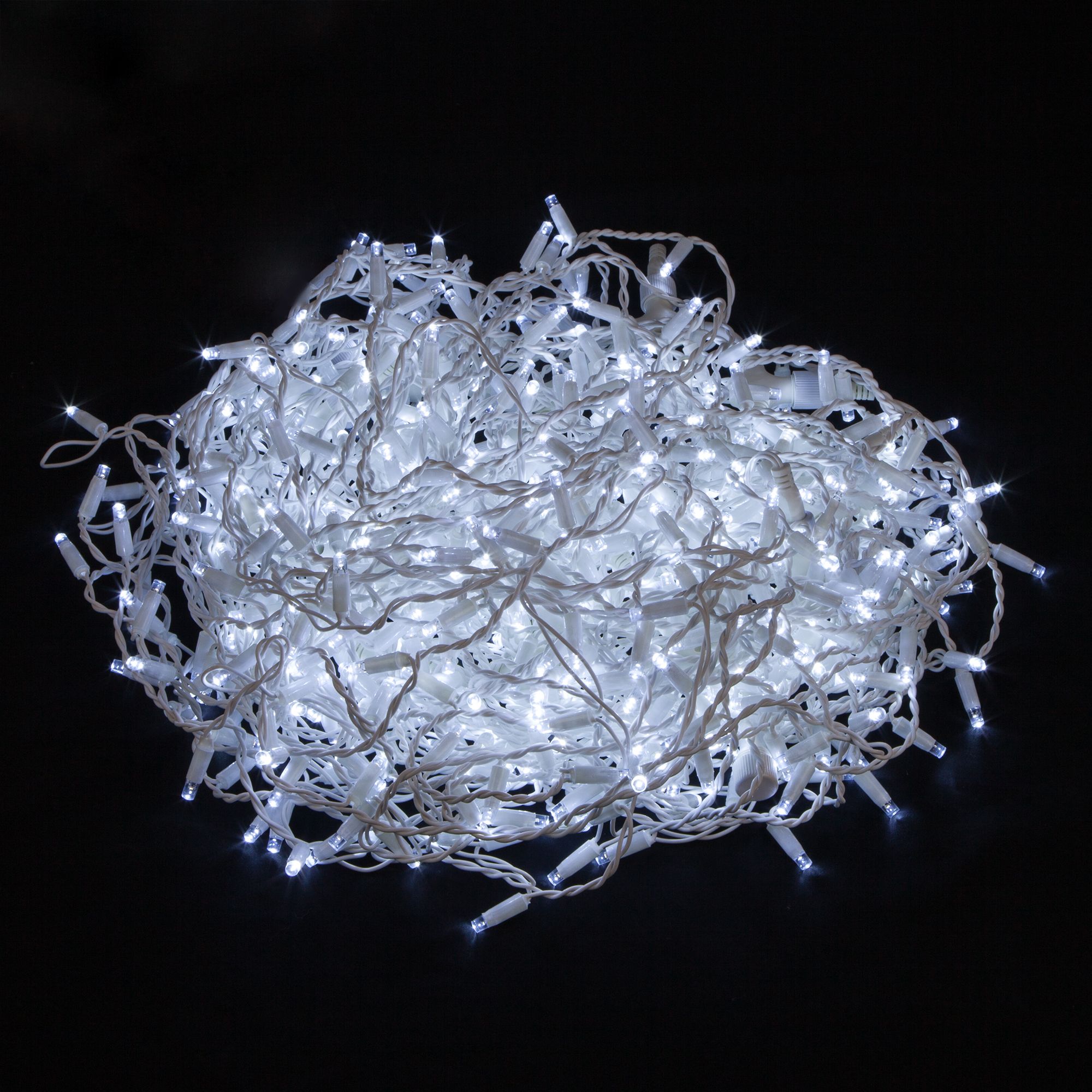 Каждый пятый светодиод мерцает с интервалом 0,5 секунд. За счет этого эффекта гирлянда становится динамичной. Наличие коннектора на окончании гирлянды позволяет соединять последовательно до 20 гирлянд.
