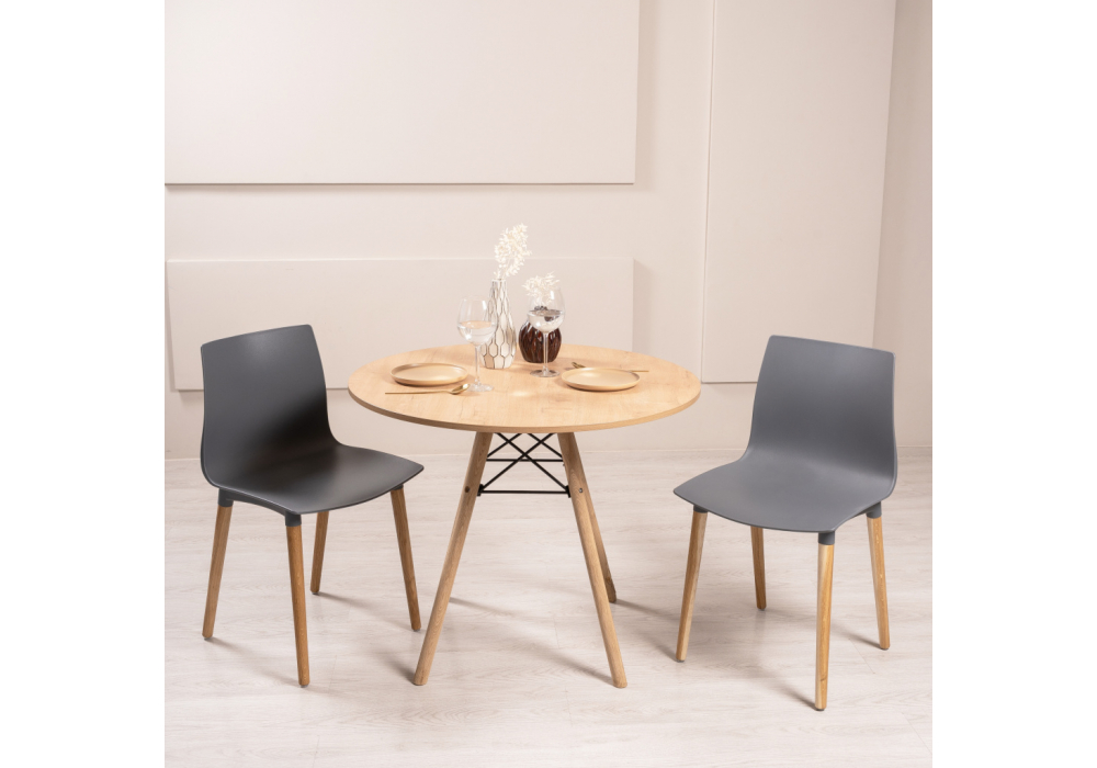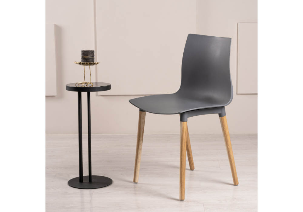 Материал каркаса - Массив дуба; Материал сиденья - Пластик; Материал ножек - Массив дуба; Цвет каркаса - Серый; Цвет сиденья - Серый; Цвет ножек - Натуральный; Ширина - 44; Глубина - 49; Высота - 80; Ширина сиденья - 44; Глубина сиденья - 39; Высота сиденья - 46