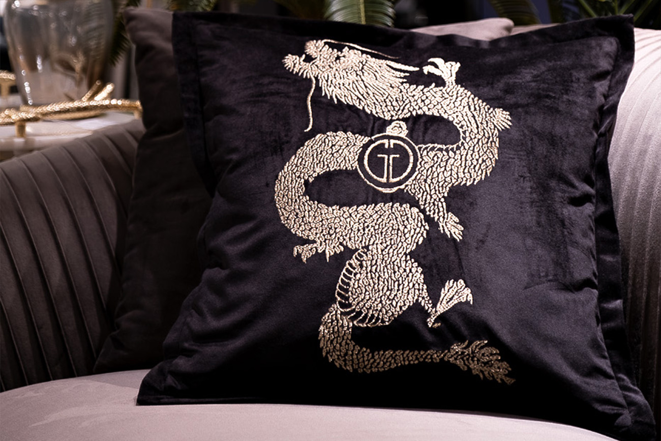 Декоративная подушка с вышивкой – прекрасное дополнение дивана или кресла. Домашний декор, который добавляет интерьеру мягкого уюта и индивидуальности. Черная подушка на диван обладает большим интерьерным потенциалом, отличается первоклассным качеством и эффектным дизайном. Главная ее изюминка – стильная вышивка дракона золотом в китайском стиле. Она выполнена из качественного текстильного материала и сохраняет первоначальную красоту годами. На сайте Garda Decor можно купить диванные подушки разного цвета и стандартных размеров, с отделкой из бисера, с геометрическими узорами и вышивкой.