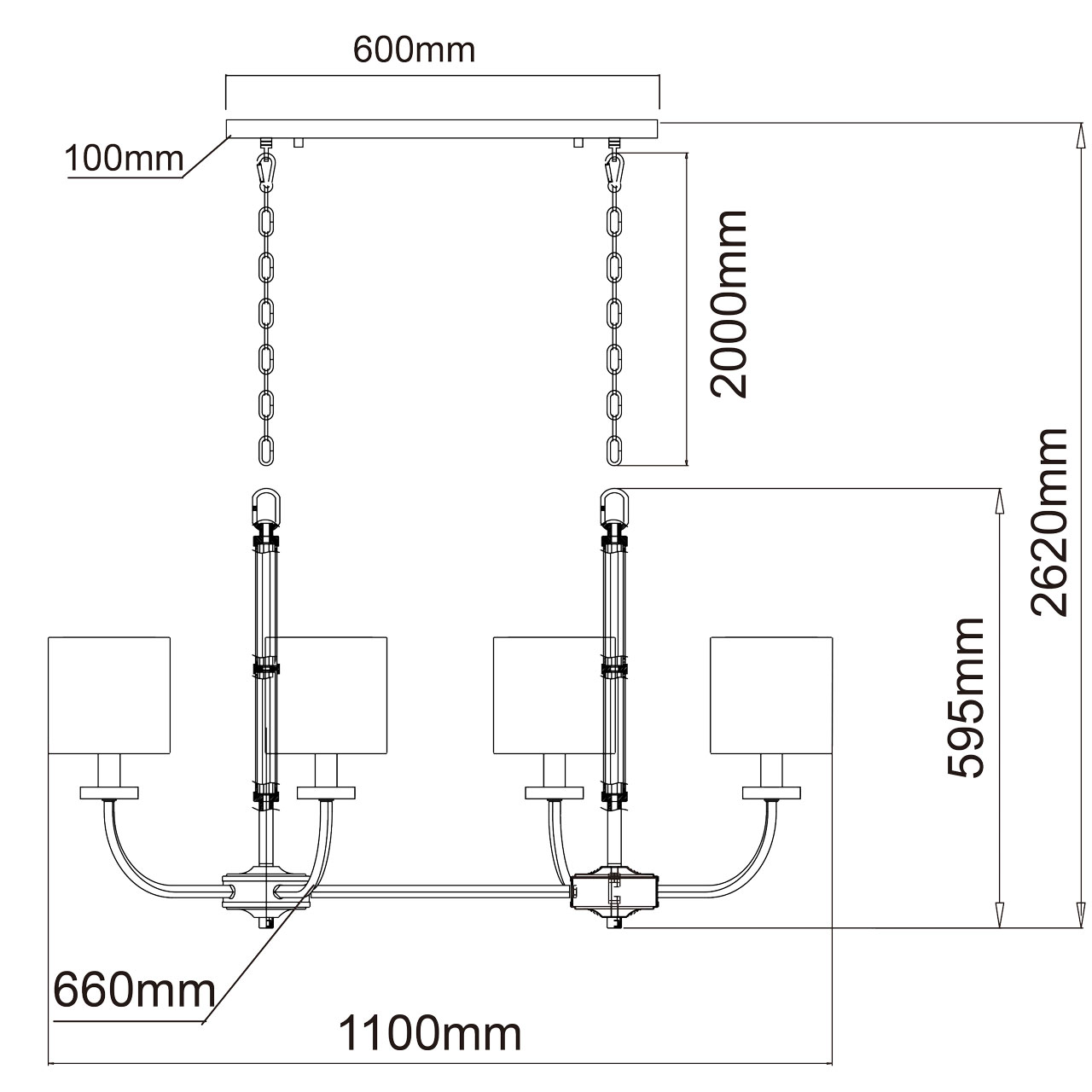 - Высота: 2620 мм (262 см)