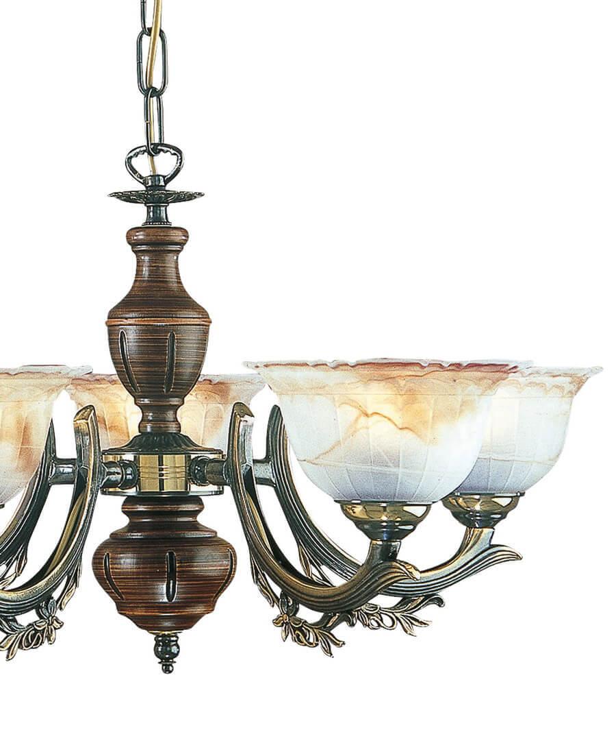 Подвесная люстра Reccagni Angelo L 2801/5 Итальянского производсва – отличный выбор для Вас. Этот светильник Классического стиля хорошо подойдет Для гостиной и придаст помещению мягкий и приятный свет. Плафоны белые из стекла. Арматура бронза из металла. Кол-во ламп - 5шт. Общая мощность 300W