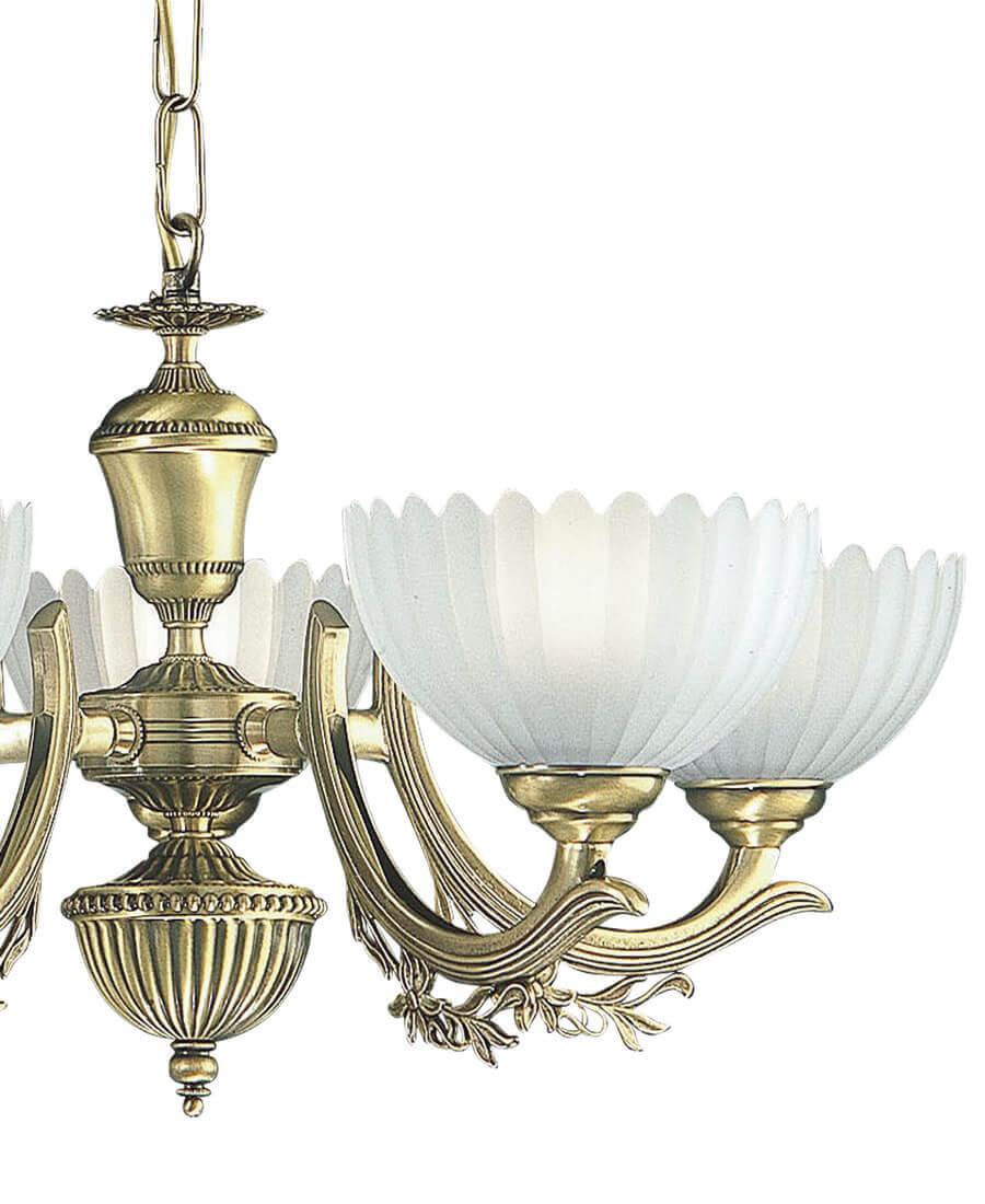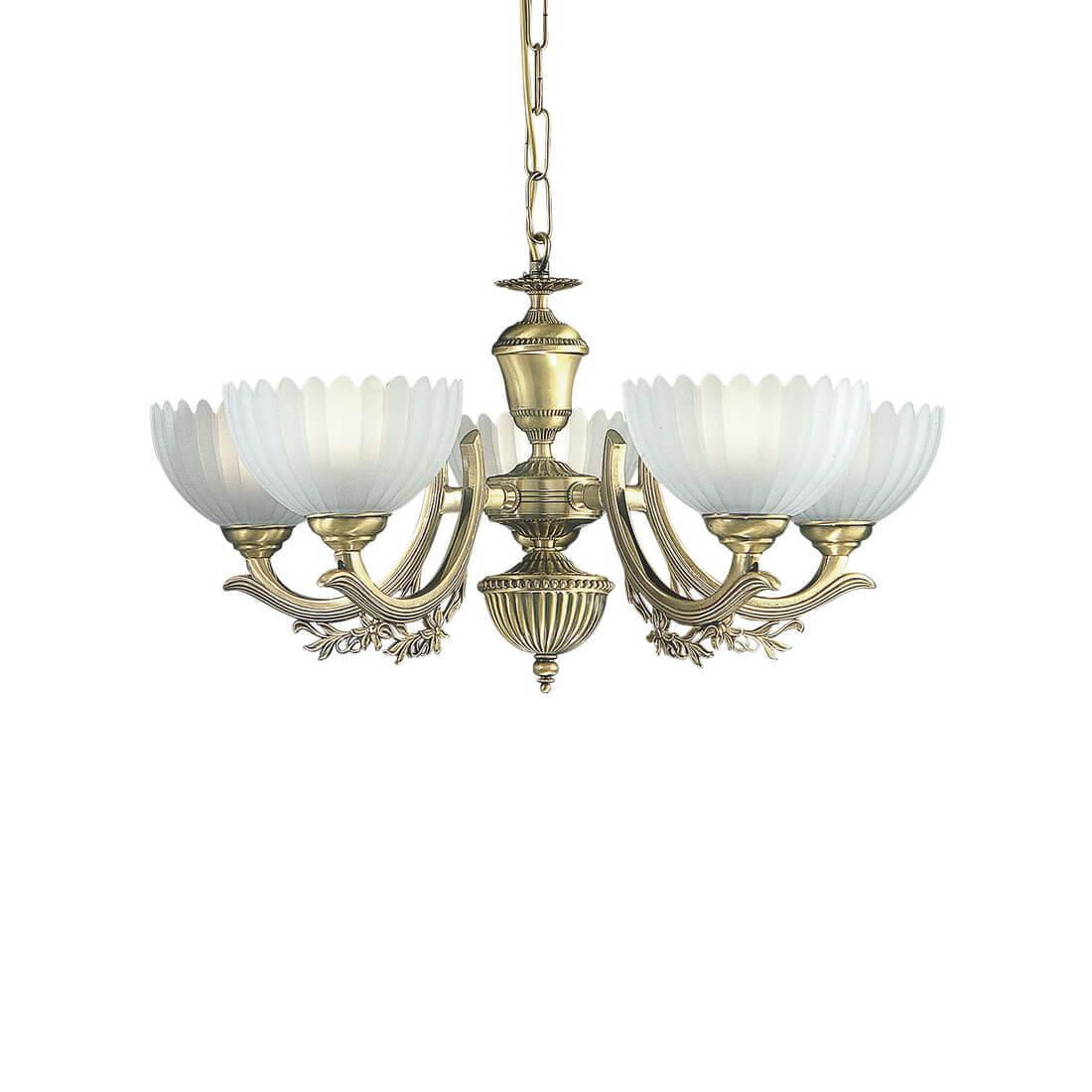 Подвесная люстра Reccagni Angelo L 2825/5 Итальянского производсва – лучшее соотношение цена-качество. Этот светильник Классического стиля хорошо подойдет Для гостиной и придаст помещению мягкий и приятный свет. Плафоны белые из стекла. Арматура бронза из металла. Кол-во ламп - 5шт. Общая мощность 300W
