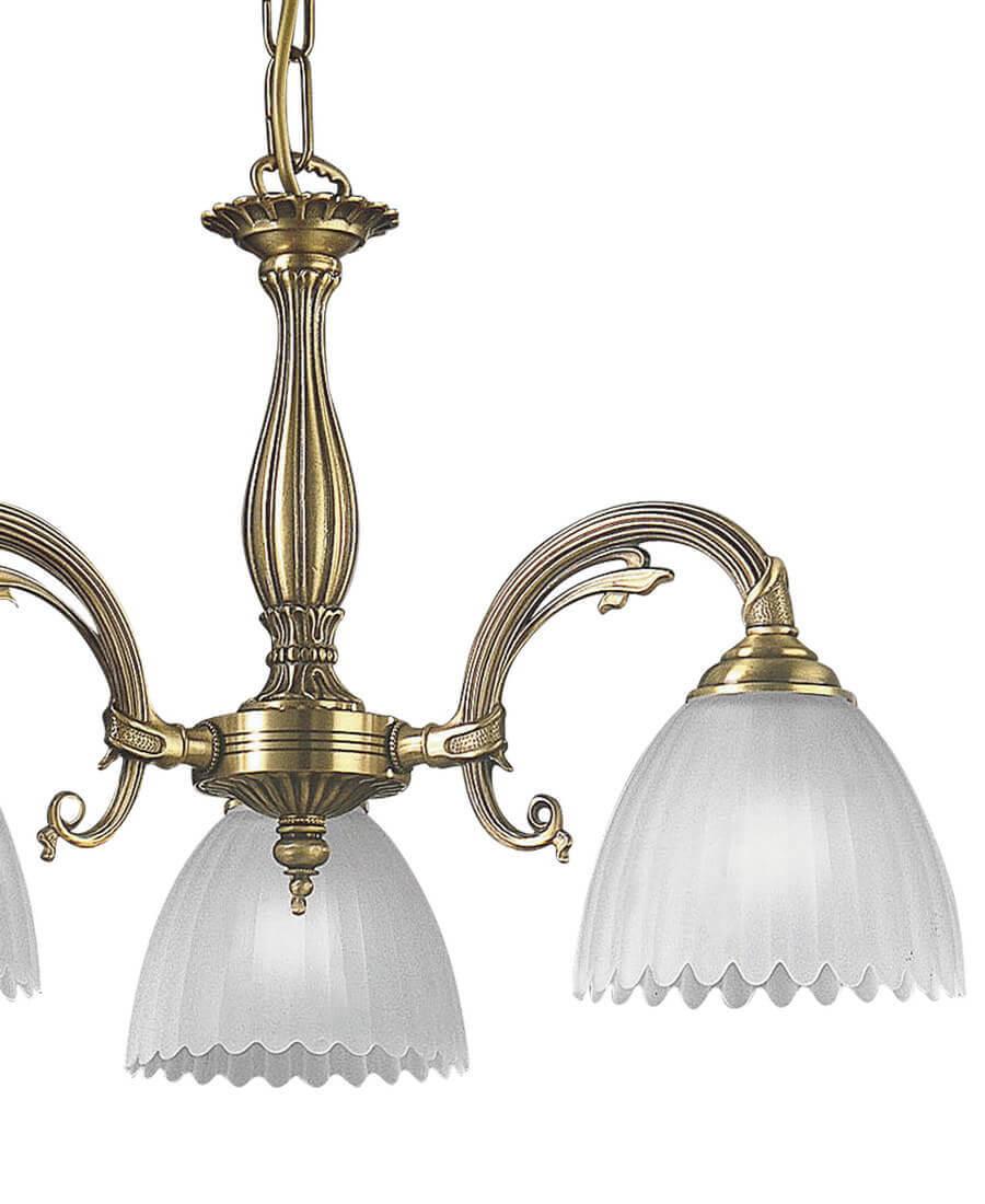 Подвесная люстра Reccagni Angelo L 3520/3 Итальянского производсва – отличный выбор для Вас. Этот светильник Классического стиля хорошо подойдет Для спальни и придаст помещению мягкий и приятный свет. Плафоны белые из стекла. Арматура бронза из металла. Кол-во ламп - 3шт. Общая мощность 180W