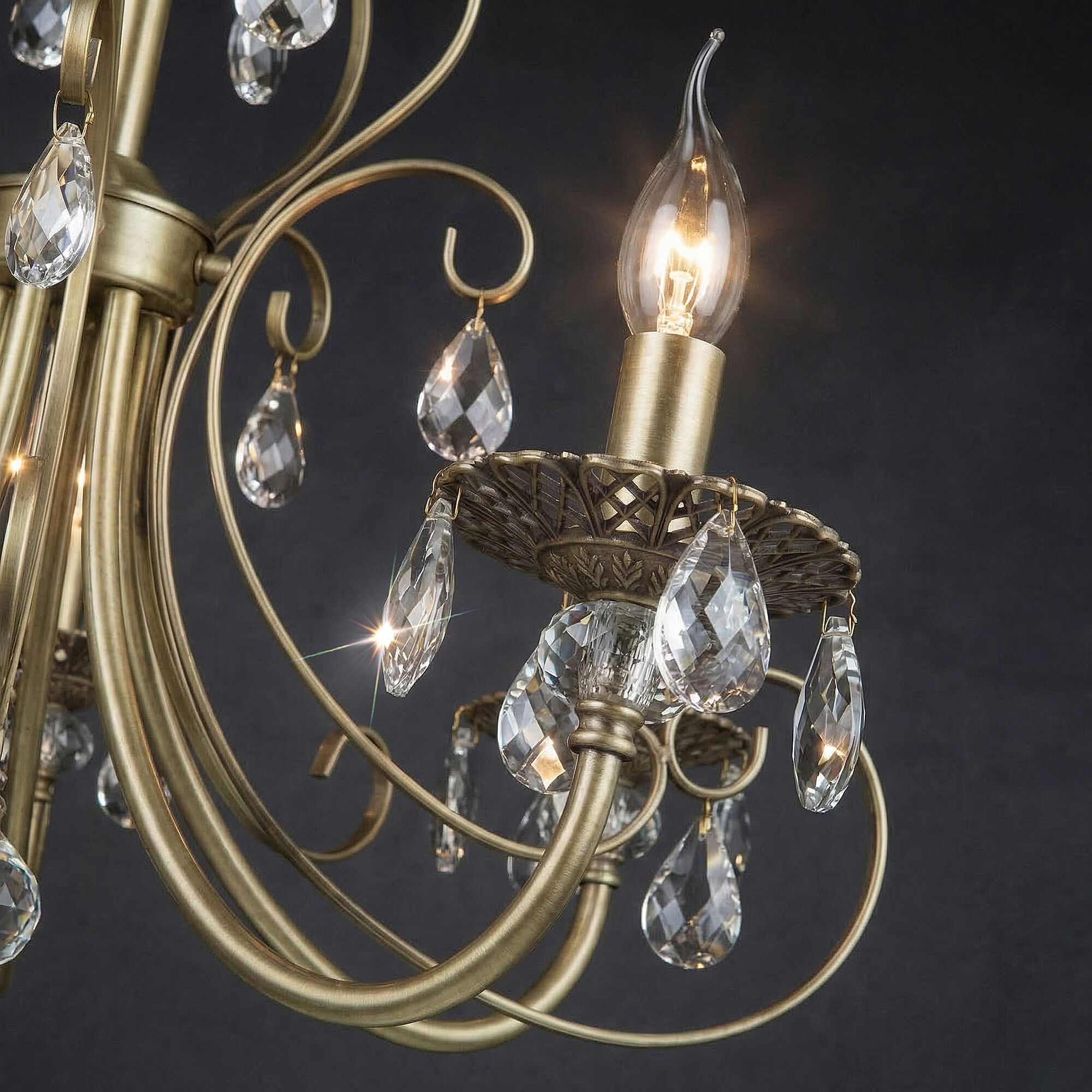Мягкий свет подвесного светильника 3305/5 пробивается сквозь прозрачные грани хрусталя, отражается в латунной арматуре с витиеватыми вензелями и рисует на стенах волшебные узоры. Этот подвесной светильник не просто освещает — он создаёт атмосферу торжественности и уюта одновременно.