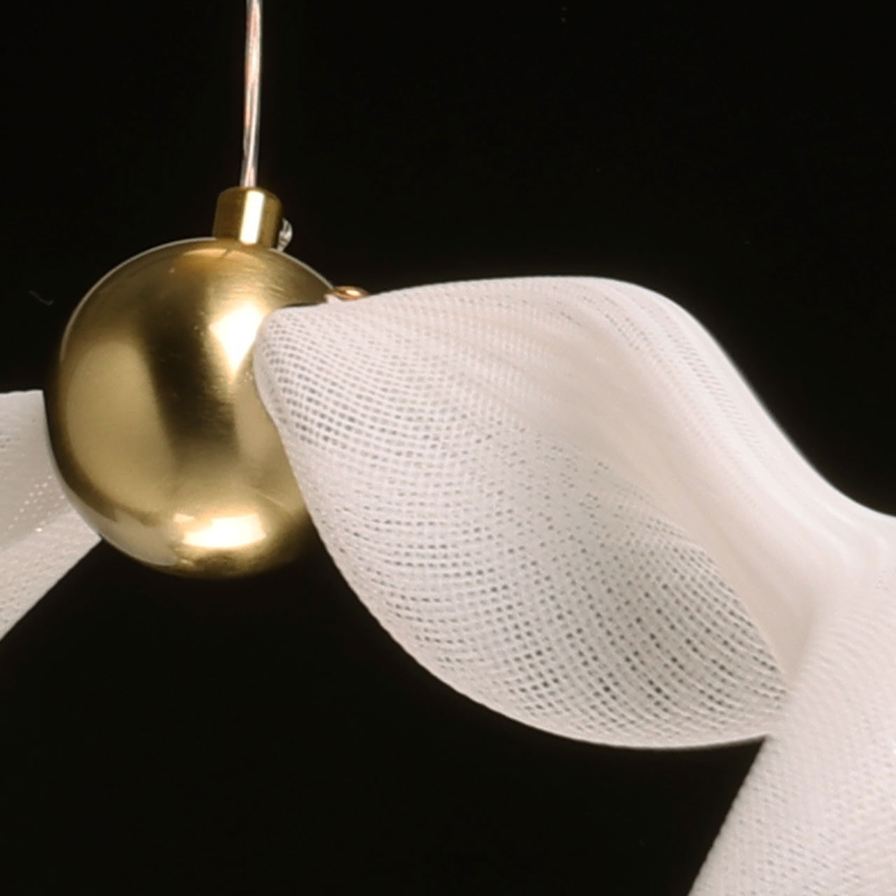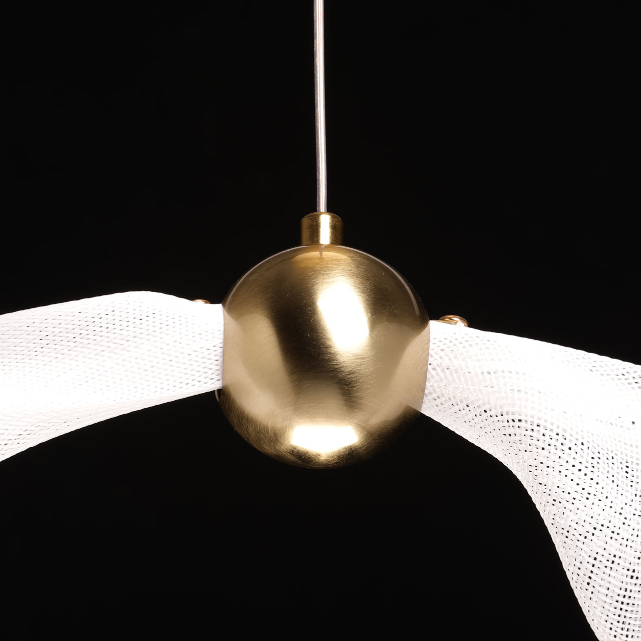 Металлическое основание подвеса гальванизировано в цвет бронзы. Светодиодный источник света закрыт белым матовым акрилом и оригинальным плафоном в виде волны. Волна плафона выполнена из акрила ячеечной структуры.