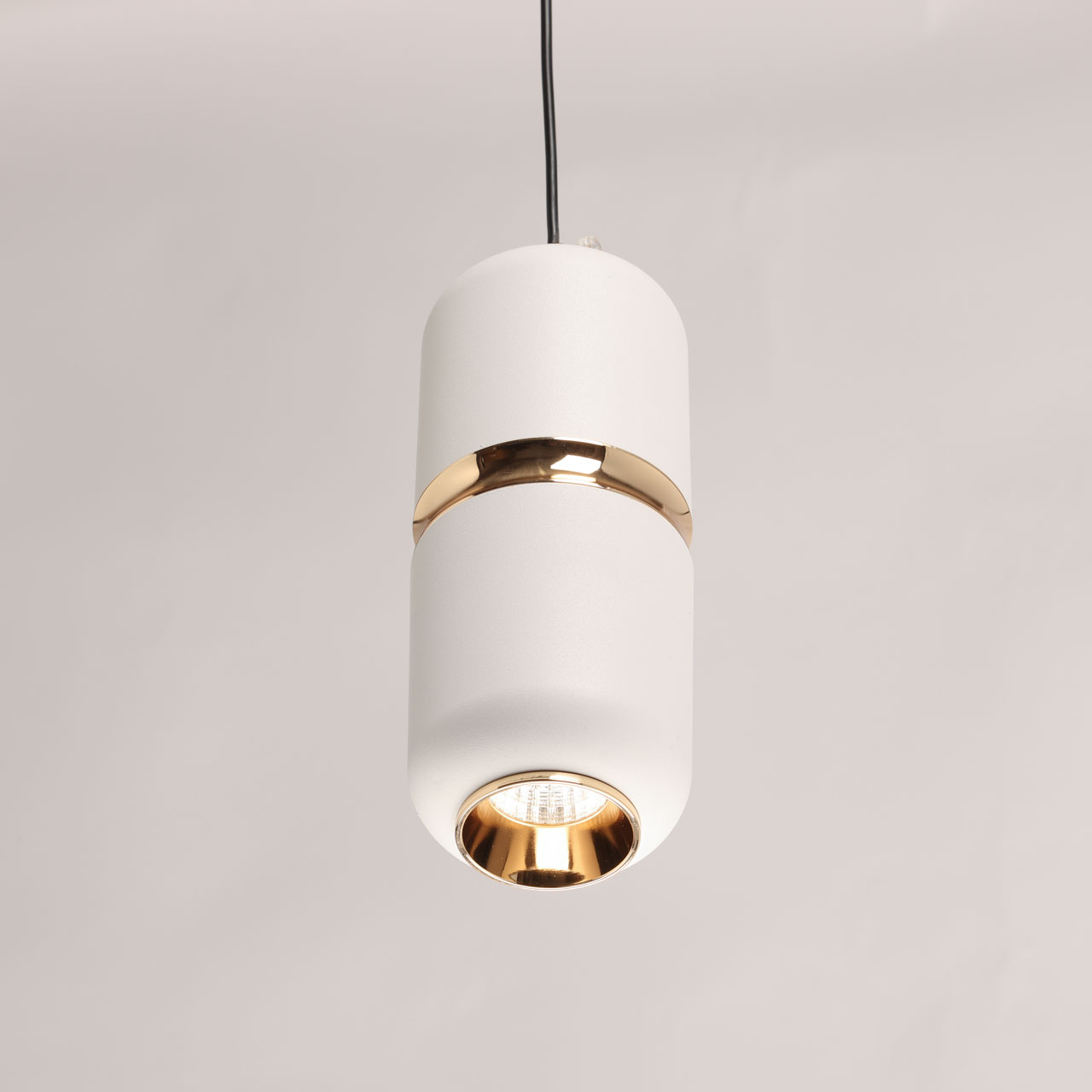 Металлическое основание подвеса окрашено в черный цвет. Корпус плафона выполнен из сплава алюминия и окрашен в белый цвет. Отдельные элементы плафона гальванизированы в цвет золота.