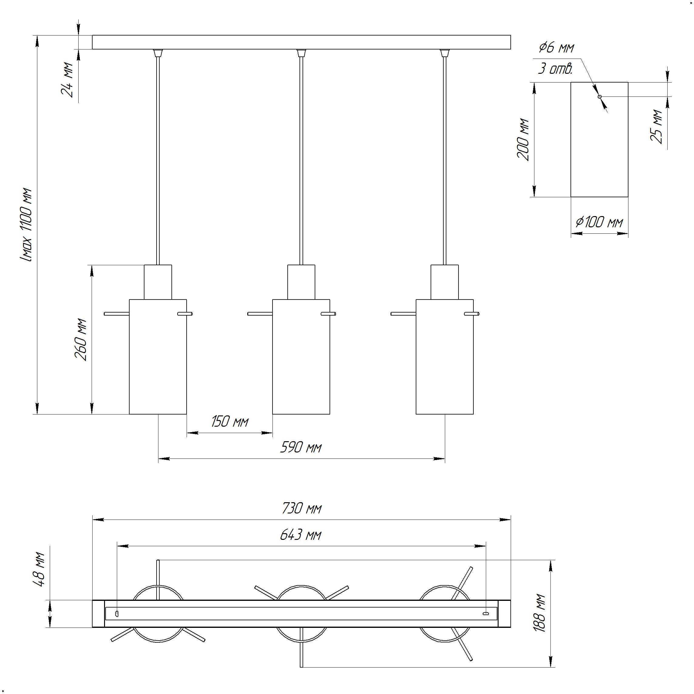 - Количество ламп: 3 шт