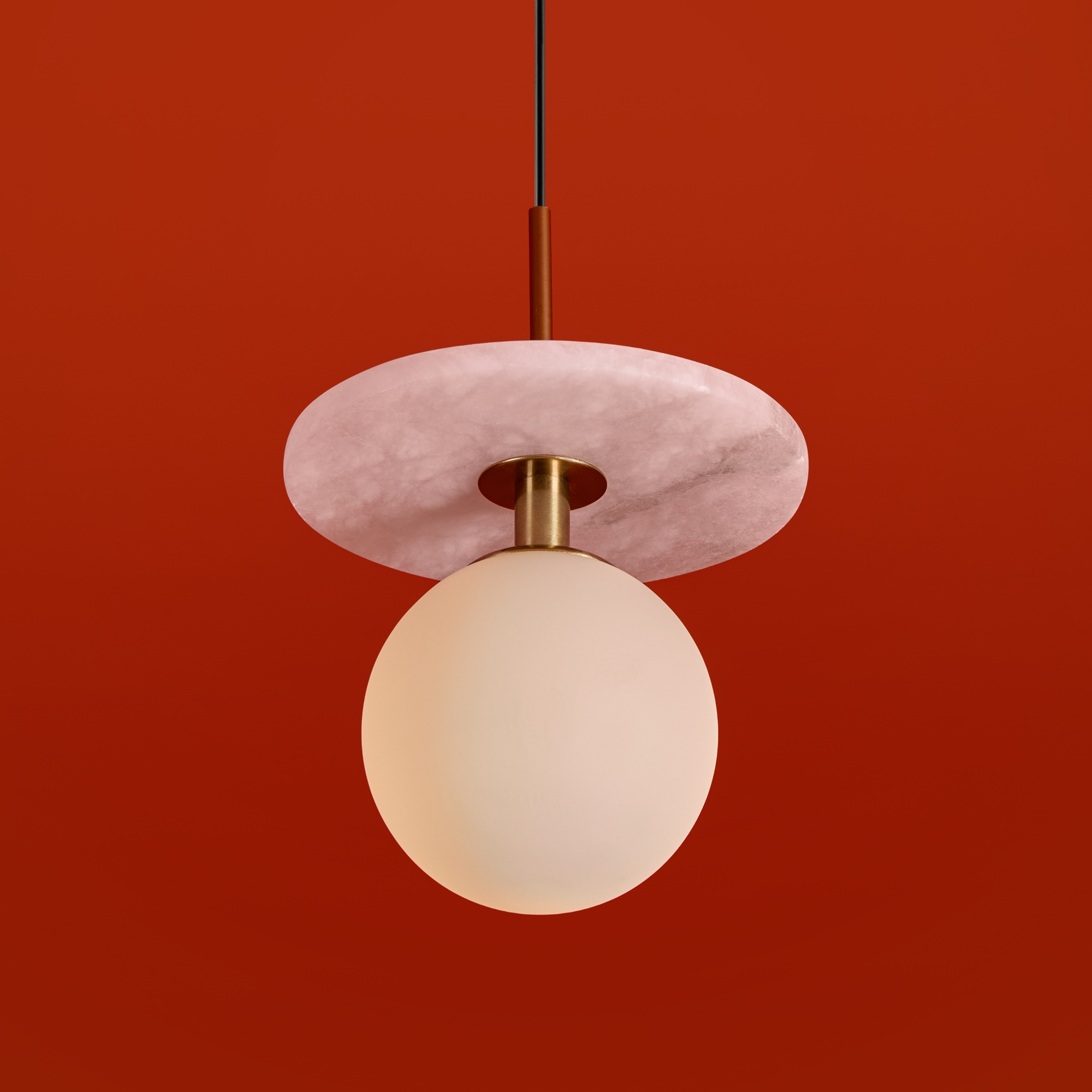 Арматура — металл. Плафоны из алебастра/камня и матового белого стекла. Версии с лампами G9 (не в комплекте) и с LED источником света. Высота регулируется.